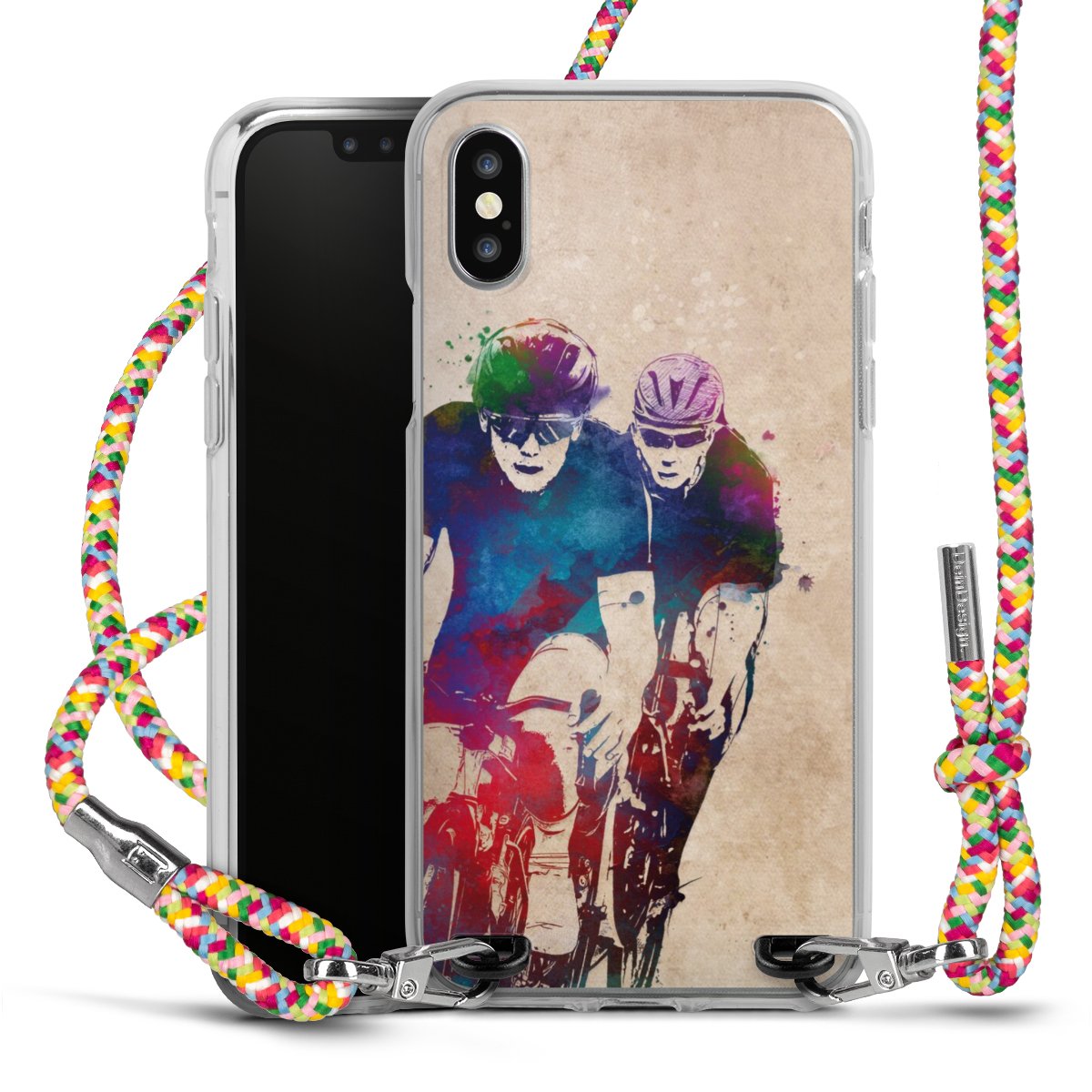 The flexible case is made from a highquality TPU material (thermoplastic Polyurethan). Thanks to its longlasting and break resistant characterisitcs, the case is flexible yet consistent in form and has a great grip and feel. The textile strap made from Polyester gives a chic yet casual accent allowing you to carry your phone like a bag or necklace - a practical gadget perfect for your next adventure. The textile strap is about 1.70 meters long and the length can easily be adjusted through the knots. Our Carry Case is available in Colourful, Mint-Camouflage, Very-Berry, Sahara-Sand and Sparkling-Neon. The ends of the textile strap are covered with metallic end caps to protect them against fraying.