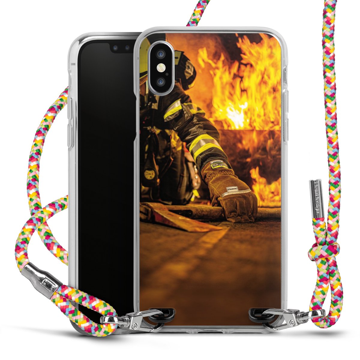 The flexible case is made from a highquality TPU material (thermoplastic Polyurethan). Thanks to its longlasting and break resistant characterisitcs, the case is flexible yet consistent in form and has a great grip and feel. The textile strap made from Polyester gives a chic yet casual accent allowing you to carry your phone like a bag or necklace - a practical gadget perfect for your next adventure. The textile strap is about 1.70 meters long and the length can easily be adjusted through the knots. Our Carry Case is available in Colourful, Mint-Camouflage, Very-Berry, Sahara-Sand and Sparkling-Neon. The ends of the textile strap are covered with metallic end caps to protect them against fraying.