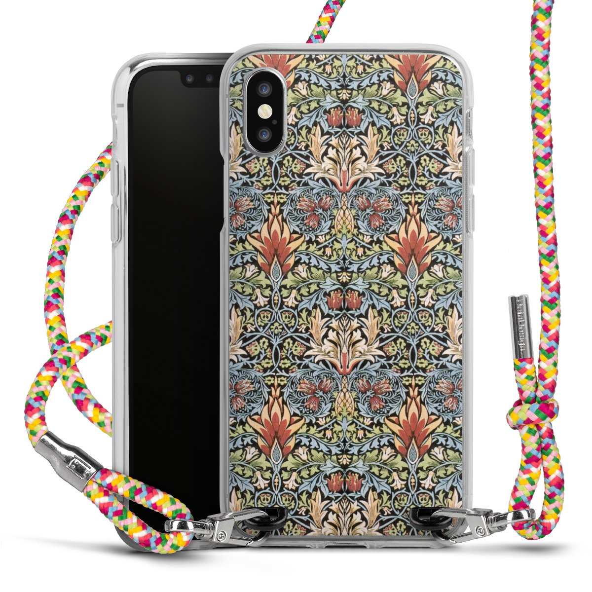 The flexible case is made from a highquality TPU material (thermoplastic Polyurethan). Thanks to its longlasting and break resistant characterisitcs, the case is flexible yet consistent in form and has a great grip and feel. The textile strap made from Polyester gives a chic yet casual accent allowing you to carry your phone like a bag or necklace - a practical gadget perfect for your next adventure. The textile strap is about 1.70 meters long and the length can easily be adjusted through the knots. Our Carry Case is available in Colourful, Mint-Camouflage, Very-Berry, Sahara-Sand and Sparkling-Neon. The ends of the textile strap are covered with metallic end caps to protect them against fraying.
