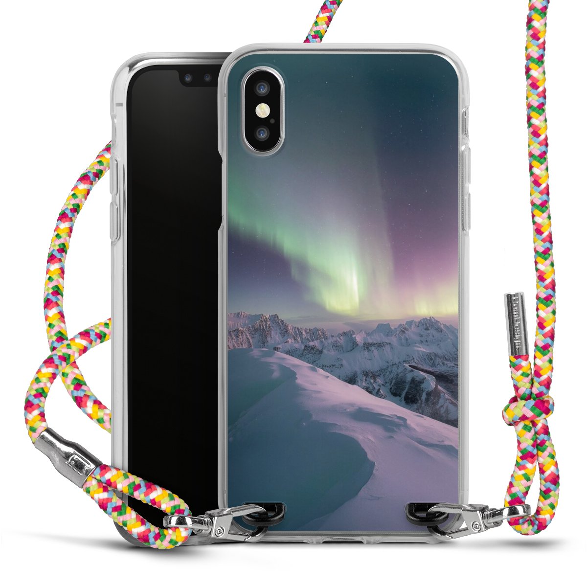 The flexible case is made from a highquality TPU material (thermoplastic Polyurethan). Thanks to its longlasting and break resistant characterisitcs, the case is flexible yet consistent in form and has a great grip and feel. The textile strap made from Polyester gives a chic yet casual accent allowing you to carry your phone like a bag or necklace - a practical gadget perfect for your next adventure. The textile strap is about 1.70 meters long and the length can easily be adjusted through the knots. Our Carry Case is available in Colourful, Mint-Camouflage, Very-Berry, Sahara-Sand and Sparkling-Neon. The ends of the textile strap are covered with metallic end caps to protect them against fraying.