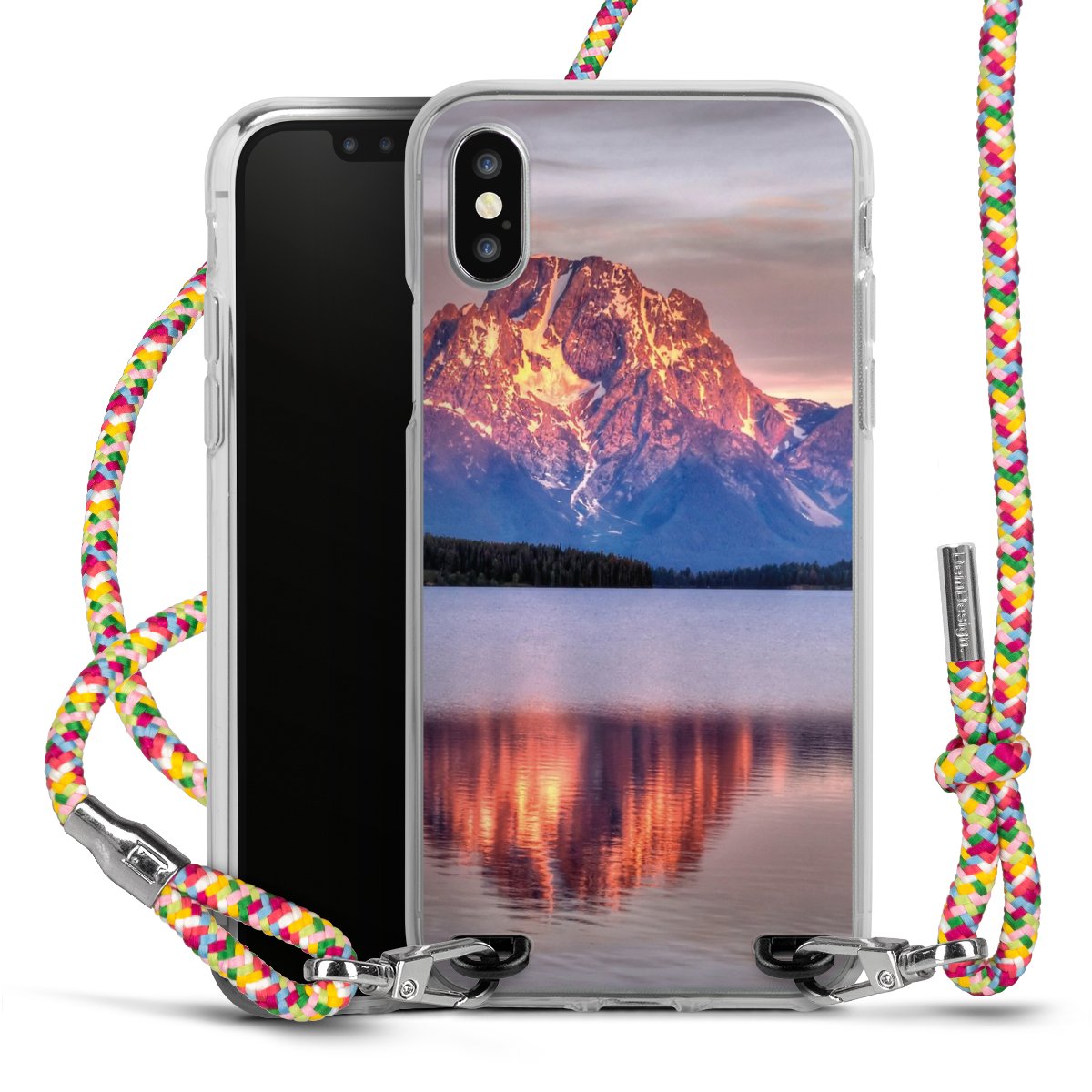 The flexible case is made from a highquality TPU material (thermoplastic Polyurethan). Thanks to its longlasting and break resistant characterisitcs, the case is flexible yet consistent in form and has a great grip and feel. The textile strap made from Polyester gives a chic yet casual accent allowing you to carry your phone like a bag or necklace - a practical gadget perfect for your next adventure. The textile strap is about 1.70 meters long and the length can easily be adjusted through the knots. Our Carry Case is available in Colourful, Mint-Camouflage, Very-Berry, Sahara-Sand and Sparkling-Neon. The ends of the textile strap are covered with metallic end caps to protect them against fraying.