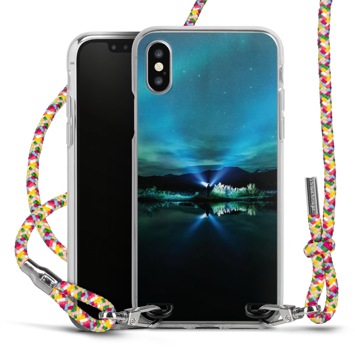 The flexible case is made from a highquality TPU material (thermoplastic Polyurethan). Thanks to its longlasting and break resistant characterisitcs, the case is flexible yet consistent in form and has a great grip and feel. The textile strap made from Polyester gives a chic yet casual accent allowing you to carry your phone like a bag or necklace - a practical gadget perfect for your next adventure. The textile strap is about 1.70 meters long and the length can easily be adjusted through the knots. Our Carry Case is available in Colourful, Mint-Camouflage, Very-Berry, Sahara-Sand and Sparkling-Neon. The ends of the textile strap are covered with metallic end caps to protect them against fraying.