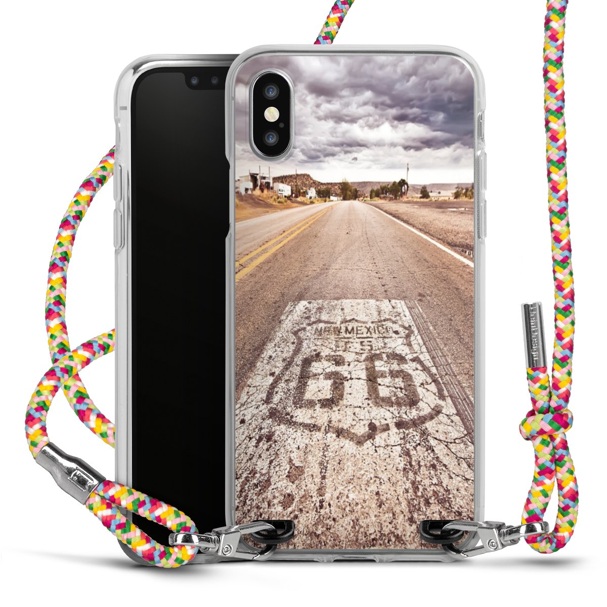 The flexible case is made from a highquality TPU material (thermoplastic Polyurethan). Thanks to its longlasting and break resistant characterisitcs, the case is flexible yet consistent in form and has a great grip and feel. The textile strap made from Polyester gives a chic yet casual accent allowing you to carry your phone like a bag or necklace - a practical gadget perfect for your next adventure. The textile strap is about 1.70 meters long and the length can easily be adjusted through the knots. Our Carry Case is available in Colourful, Mint-Camouflage, Very-Berry, Sahara-Sand and Sparkling-Neon. The ends of the textile strap are covered with metallic end caps to protect them against fraying.
