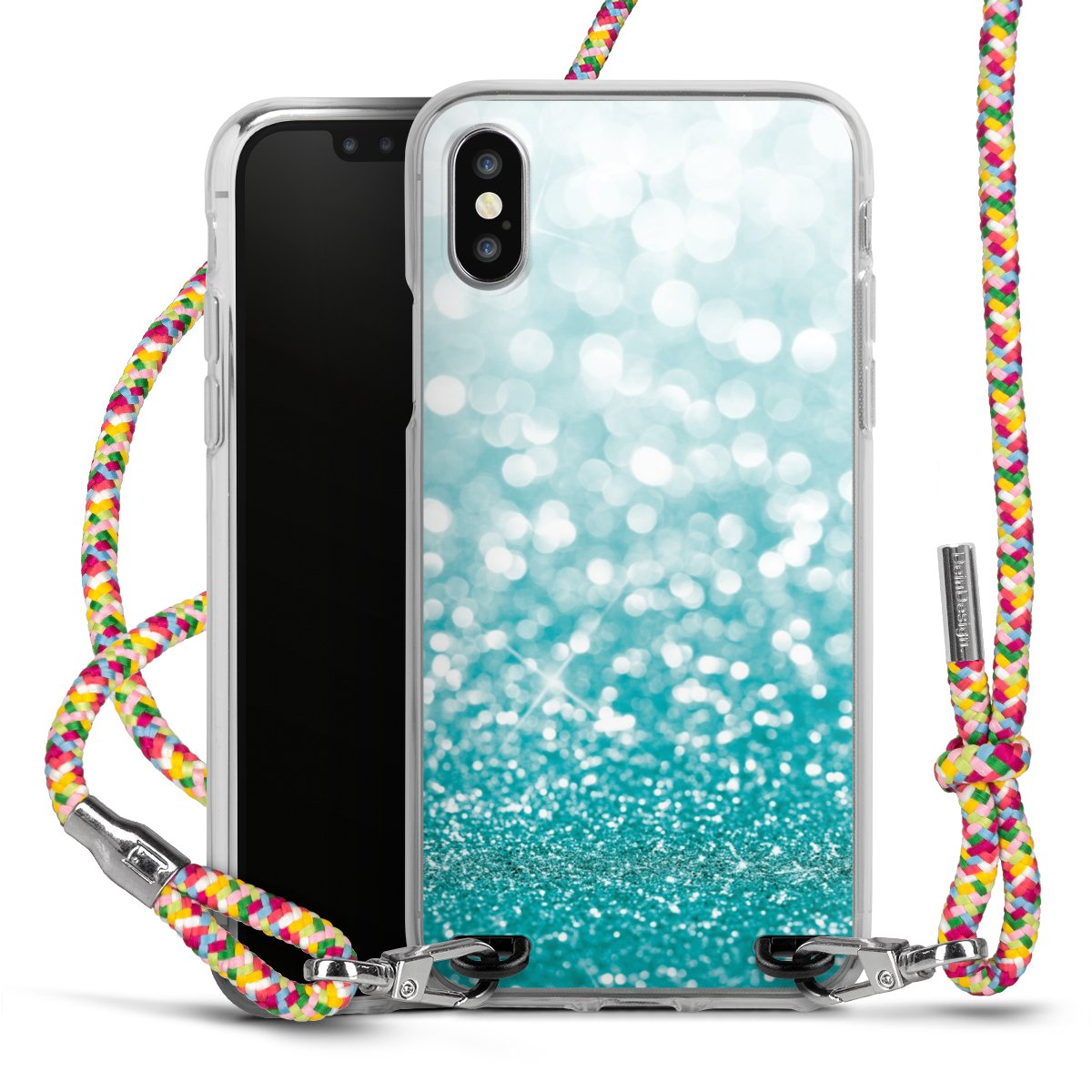 The flexible case is made from a highquality TPU material (thermoplastic Polyurethan). Thanks to its longlasting and break resistant characterisitcs, the case is flexible yet consistent in form and has a great grip and feel. The textile strap made from Polyester gives a chic yet casual accent allowing you to carry your phone like a bag or necklace - a practical gadget perfect for your next adventure. The textile strap is about 1.70 meters long and the length can easily be adjusted through the knots. Our Carry Case is available in Colourful, Mint-Camouflage, Very-Berry, Sahara-Sand and Sparkling-Neon. The ends of the textile strap are covered with metallic end caps to protect them against fraying.