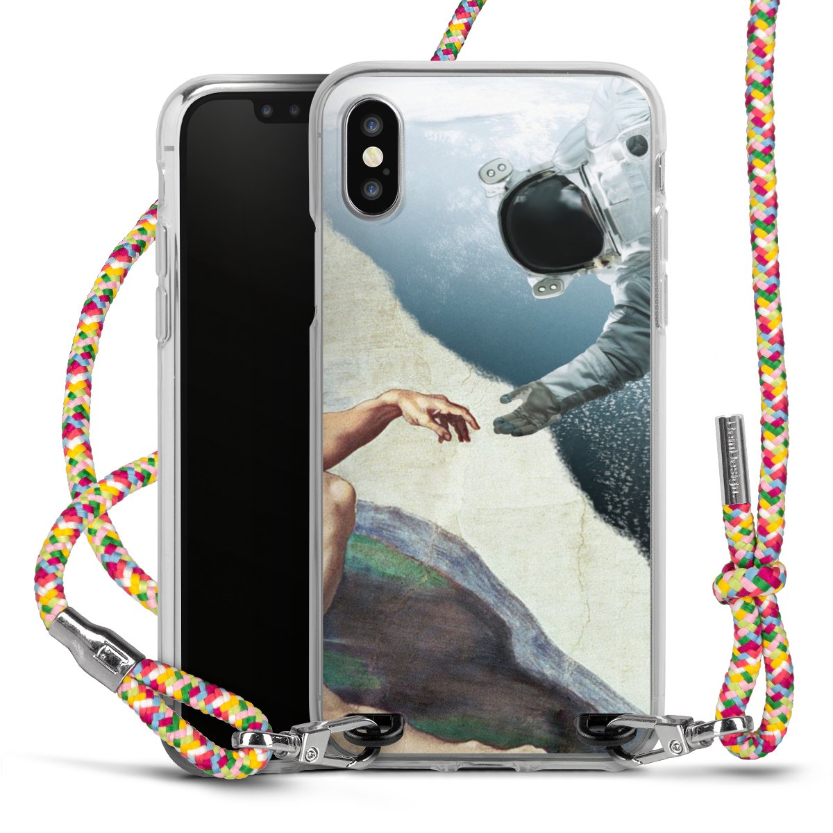 The flexible case is made from a highquality TPU material (thermoplastic Polyurethan). Thanks to its longlasting and break resistant characterisitcs, the case is flexible yet consistent in form and has a great grip and feel. The textile strap made from Polyester gives a chic yet casual accent allowing you to carry your phone like a bag or necklace - a practical gadget perfect for your next adventure. The textile strap is about 1.70 meters long and the length can easily be adjusted through the knots. Our Carry Case is available in Colourful, Mint-Camouflage, Very-Berry, Sahara-Sand and Sparkling-Neon. The ends of the textile strap are covered with metallic end caps to protect them against fraying.