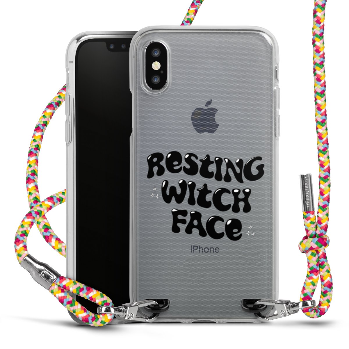 The flexible case is made from a highquality TPU material (thermoplastic Polyurethan). Thanks to its longlasting and break resistant characterisitcs, the case is flexible yet consistent in form and has a great grip and feel. The textile strap made from Polyester gives a chic yet casual accent allowing you to carry your phone like a bag or necklace - a practical gadget perfect for your next adventure. The textile strap is about 1.70 meters long and the length can easily be adjusted through the knots. Our Carry Case is available in Colourful, Mint-Camouflage, Very-Berry, Sahara-Sand and Sparkling-Neon. The ends of the textile strap are covered with metallic end caps to protect them against fraying.