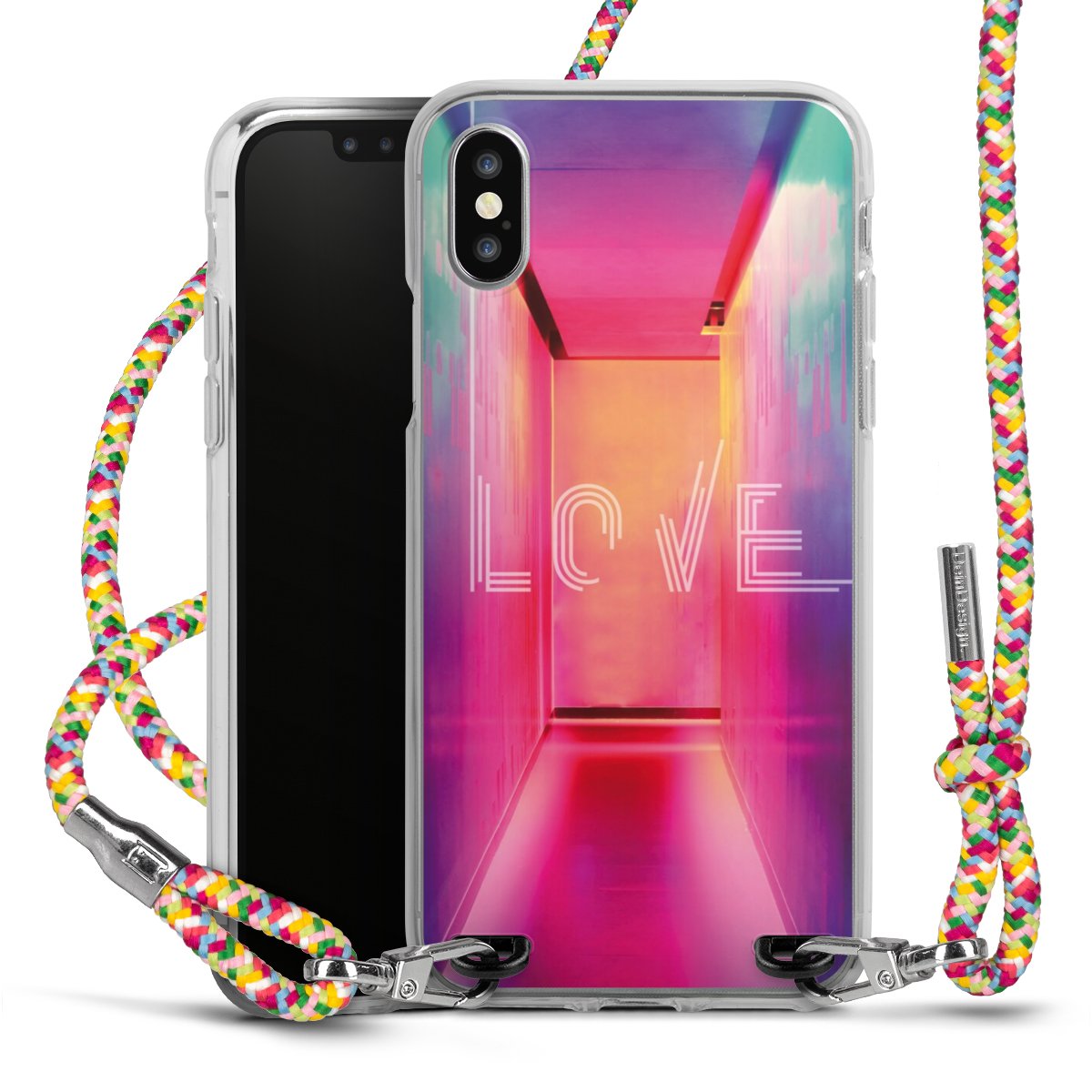 The flexible case is made from a highquality TPU material (thermoplastic Polyurethan). Thanks to its longlasting and break resistant characterisitcs, the case is flexible yet consistent in form and has a great grip and feel. The textile strap made from Polyester gives a chic yet casual accent allowing you to carry your phone like a bag or necklace - a practical gadget perfect for your next adventure. The textile strap is about 1.70 meters long and the length can easily be adjusted through the knots. Our Carry Case is available in Colourful, Mint-Camouflage, Very-Berry, Sahara-Sand and Sparkling-Neon. The ends of the textile strap are covered with metallic end caps to protect them against fraying.