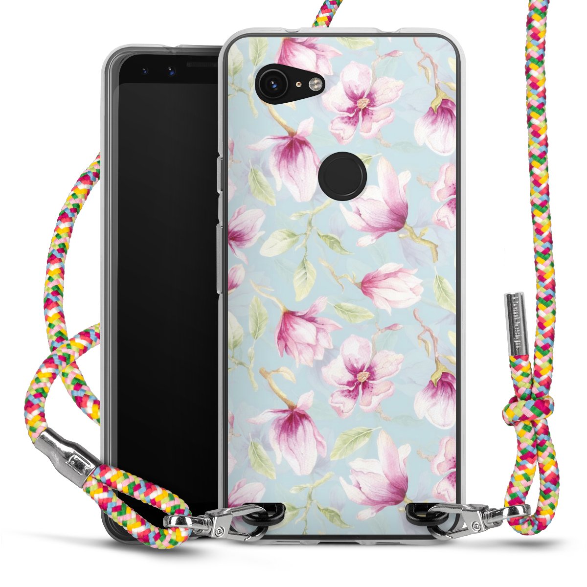 The flexible case is made from a highquality TPU material (thermoplastic Polyurethan). Thanks to its longlasting and break resistant characterisitcs, the case is flexible yet consistent in form and has a great grip and feel. The textile strap made from Polyester gives a chic yet casual accent allowing you to carry your phone like a bag or necklace - a practical gadget perfect for your next adventure. The textile strap is about 1.70 meters long and the length can easily be adjusted through the knots. Our Carry Case is available in Colourful, Mint-Camouflage, Very-Berry, Sahara-Sand and Sparkling-Neon. The ends of the textile strap are covered with metallic end caps to protect them against fraying.