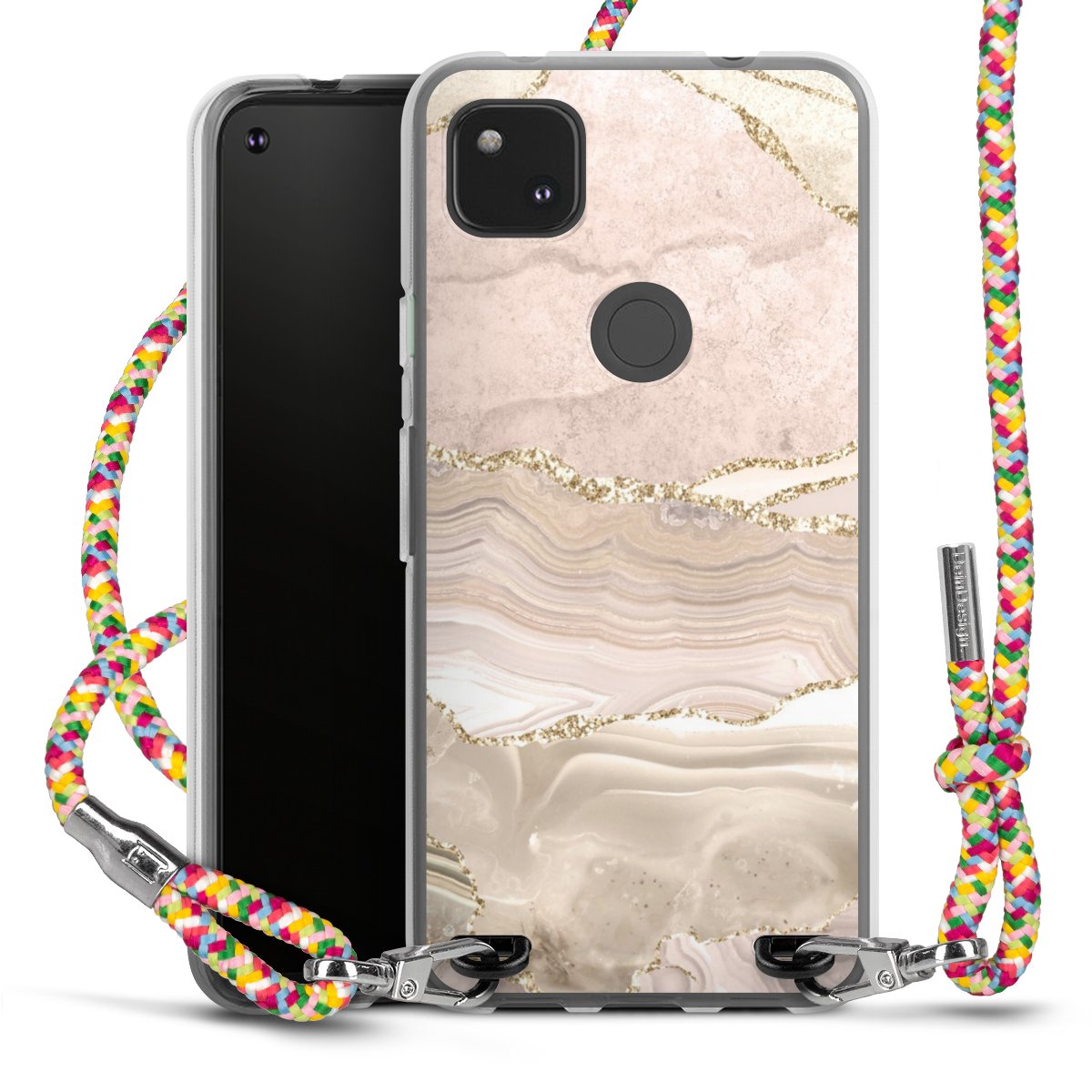 The flexible case is made from a highquality TPU material (thermoplastic Polyurethan). Thanks to its longlasting and break resistant characterisitcs, the case is flexible yet consistent in form and has a great grip and feel. The textile strap made from Polyester gives a chic yet casual accent allowing you to carry your phone like a bag or necklace - a practical gadget perfect for your next adventure. The textile strap is about 1.70 meters long and the length can easily be adjusted through the knots. Our Carry Case is available in Colourful, Mint-Camouflage, Very-Berry, Sahara-Sand and Sparkling-Neon. The ends of the textile strap are covered with metallic end caps to protect them against fraying.