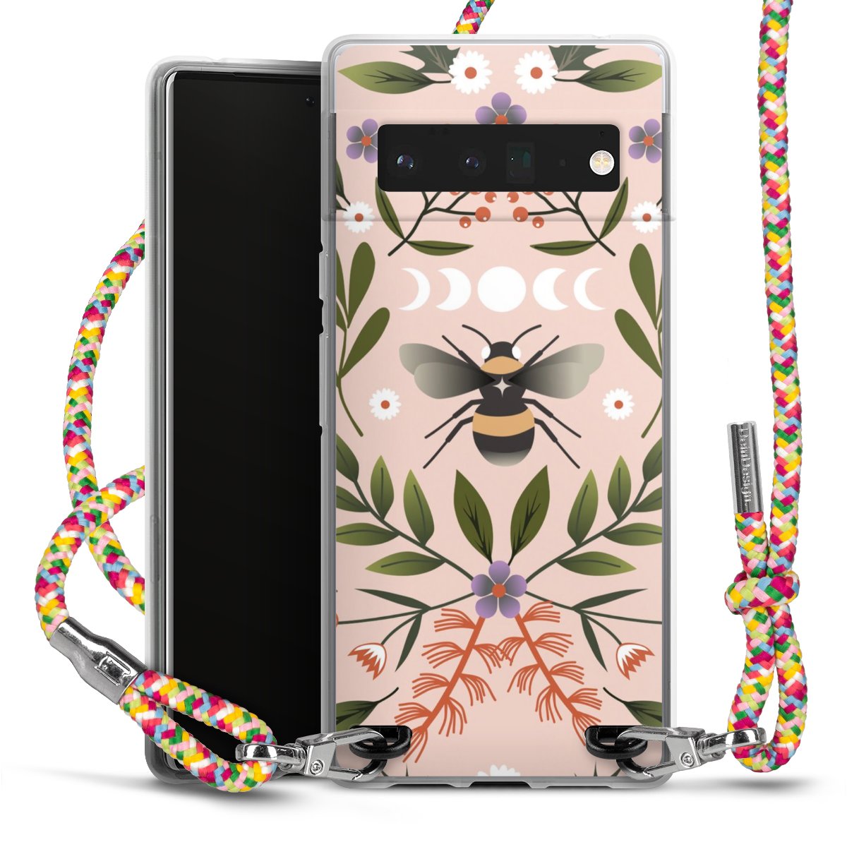 The flexible case is made from a highquality TPU material (thermoplastic Polyurethan). Thanks to its longlasting and break resistant characterisitcs, the case is flexible yet consistent in form and has a great grip and feel. The textile strap made from Polyester gives a chic yet casual accent allowing you to carry your phone like a bag or necklace - a practical gadget perfect for your next adventure. The textile strap is about 1.70 meters long and the length can easily be adjusted through the knots. Our Carry Case is available in Colourful, Mint-Camouflage, Very-Berry, Sahara-Sand and Sparkling-Neon. The ends of the textile strap are covered with metallic end caps to protect them against fraying.