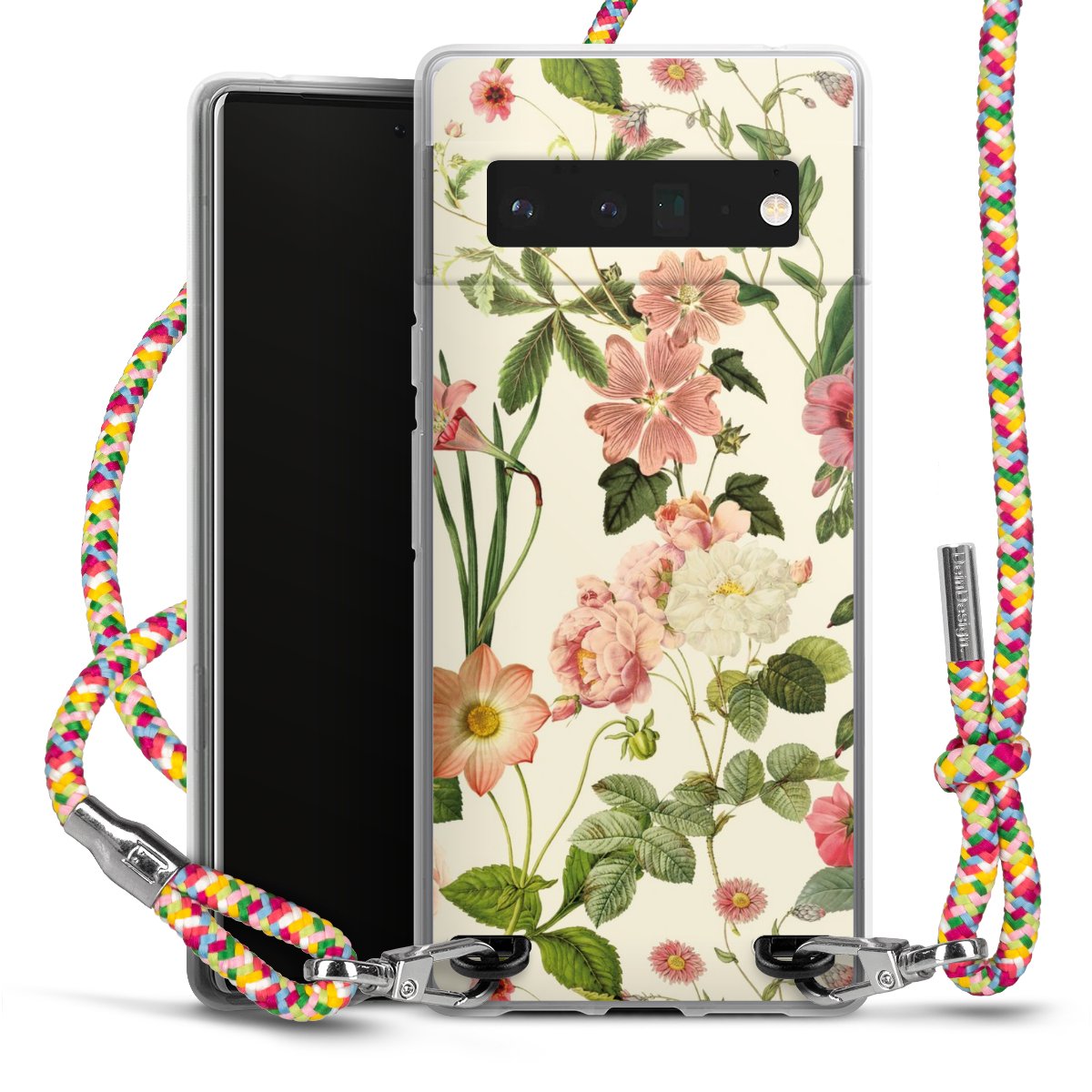 The flexible case is made from a highquality TPU material (thermoplastic Polyurethan). Thanks to its longlasting and break resistant characterisitcs, the case is flexible yet consistent in form and has a great grip and feel. The textile strap made from Polyester gives a chic yet casual accent allowing you to carry your phone like a bag or necklace - a practical gadget perfect for your next adventure. The textile strap is about 1.70 meters long and the length can easily be adjusted through the knots. Our Carry Case is available in Colourful, Mint-Camouflage, Very-Berry, Sahara-Sand and Sparkling-Neon. The ends of the textile strap are covered with metallic end caps to protect them against fraying.