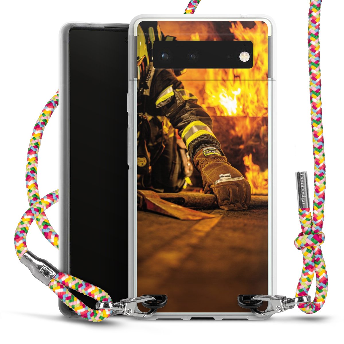 The flexible case is made from a highquality TPU material (thermoplastic Polyurethan). Thanks to its longlasting and break resistant characterisitcs, the case is flexible yet consistent in form and has a great grip and feel. The textile strap made from Polyester gives a chic yet casual accent allowing you to carry your phone like a bag or necklace - a practical gadget perfect for your next adventure. The textile strap is about 1.70 meters long and the length can easily be adjusted through the knots. Our Carry Case is available in Colourful, Mint-Camouflage, Very-Berry, Sahara-Sand and Sparkling-Neon. The ends of the textile strap are covered with metallic end caps to protect them against fraying.