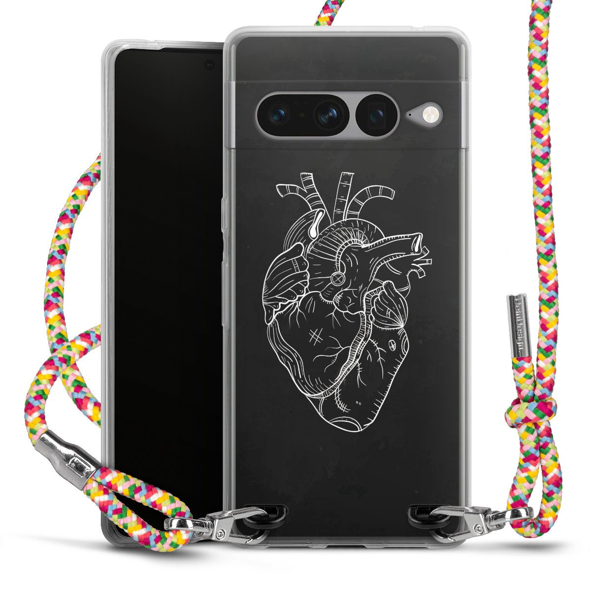 The flexible case is made from a highquality TPU material (thermoplastic Polyurethan). Thanks to its longlasting and break resistant characterisitcs, the case is flexible yet consistent in form and has a great grip and feel. The textile strap made from Polyester gives a chic yet casual accent allowing you to carry your phone like a bag or necklace - a practical gadget perfect for your next adventure. The textile strap is about 1.70 meters long and the length can easily be adjusted through the knots. Our Carry Case is available in Colourful, Mint-Camouflage, Very-Berry, Sahara-Sand and Sparkling-Neon. The ends of the textile strap are covered with metallic end caps to protect them against fraying.
