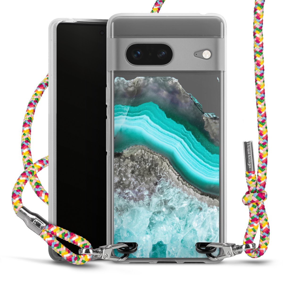 The flexible case is made from a highquality TPU material (thermoplastic Polyurethan). Thanks to its longlasting and break resistant characterisitcs, the case is flexible yet consistent in form and has a great grip and feel. The textile strap made from Polyester gives a chic yet casual accent allowing you to carry your phone like a bag or necklace - a practical gadget perfect for your next adventure. The textile strap is about 1.70 meters long and the length can easily be adjusted through the knots. Our Carry Case is available in Colourful, Mint-Camouflage, Very-Berry, Sahara-Sand and Sparkling-Neon. The ends of the textile strap are covered with metallic end caps to protect them against fraying.