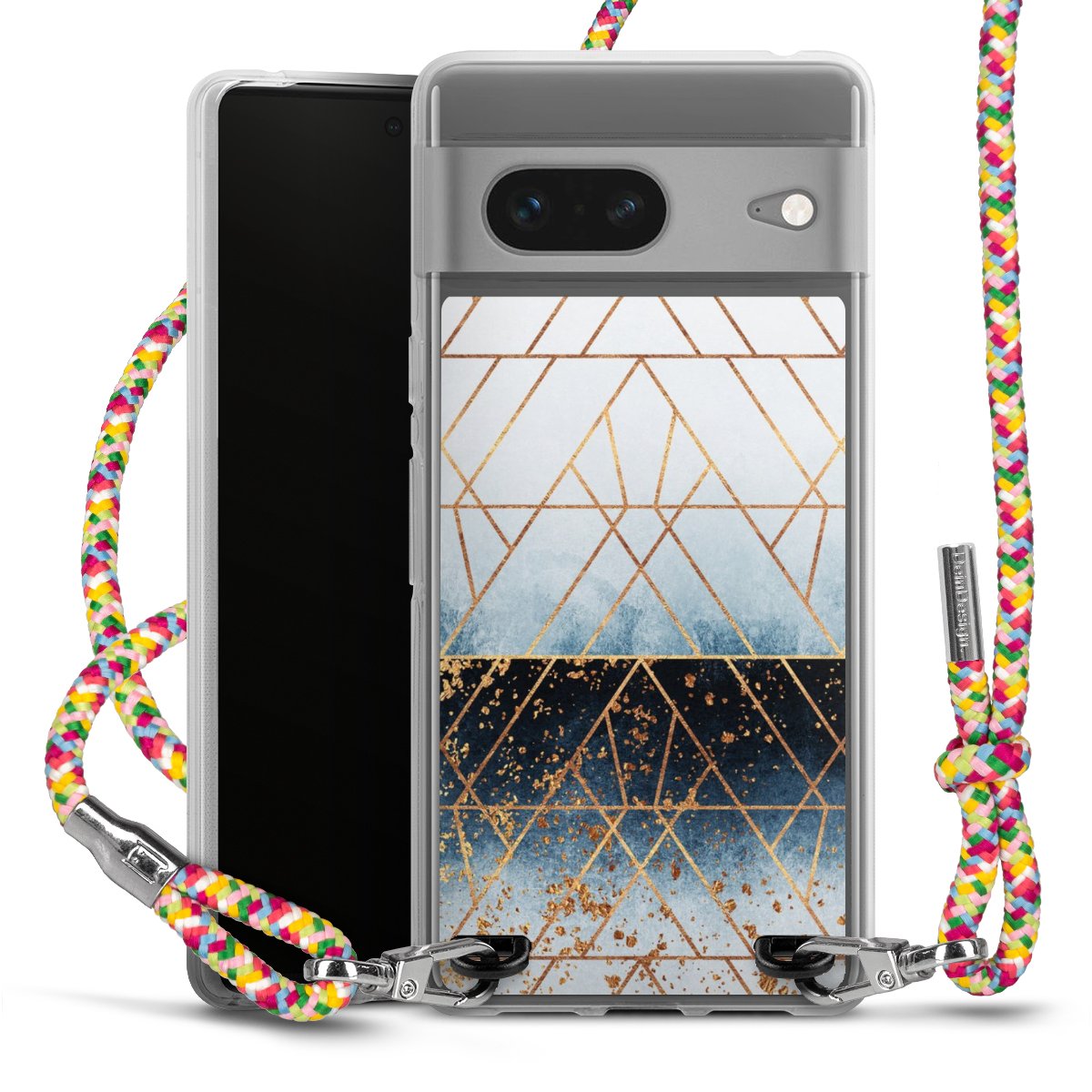 The flexible case is made from a highquality TPU material (thermoplastic Polyurethan). Thanks to its longlasting and break resistant characterisitcs, the case is flexible yet consistent in form and has a great grip and feel. The textile strap made from Polyester gives a chic yet casual accent allowing you to carry your phone like a bag or necklace - a practical gadget perfect for your next adventure. The textile strap is about 1.70 meters long and the length can easily be adjusted through the knots. Our Carry Case is available in Colourful, Mint-Camouflage, Very-Berry, Sahara-Sand and Sparkling-Neon. The ends of the textile strap are covered with metallic end caps to protect them against fraying.
