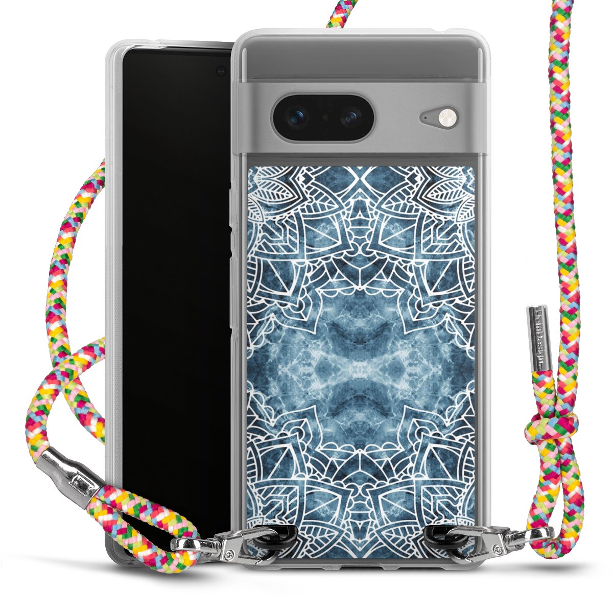 The flexible case is made from a highquality TPU material (thermoplastic Polyurethan). Thanks to its longlasting and break resistant characterisitcs, the case is flexible yet consistent in form and has a great grip and feel. The textile strap made from Polyester gives a chic yet casual accent allowing you to carry your phone like a bag or necklace - a practical gadget perfect for your next adventure. The textile strap is about 1.70 meters long and the length can easily be adjusted through the knots. Our Carry Case is available in Colourful, Mint-Camouflage, Very-Berry, Sahara-Sand and Sparkling-Neon. The ends of the textile strap are covered with metallic end caps to protect them against fraying.