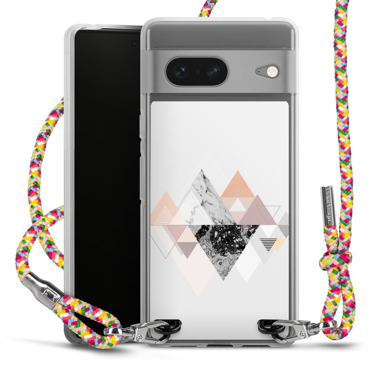 The flexible case is made from a highquality TPU material (thermoplastic Polyurethan). Thanks to its longlasting and break resistant characterisitcs, the case is flexible yet consistent in form and has a great grip and feel. The textile strap made from Polyester gives a chic yet casual accent allowing you to carry your phone like a bag or necklace - a practical gadget perfect for your next adventure. The textile strap is about 1.70 meters long and the length can easily be adjusted through the knots. Our Carry Case is available in Colourful, Mint-Camouflage, Very-Berry, Sahara-Sand and Sparkling-Neon. The ends of the textile strap are covered with metallic end caps to protect them against fraying.