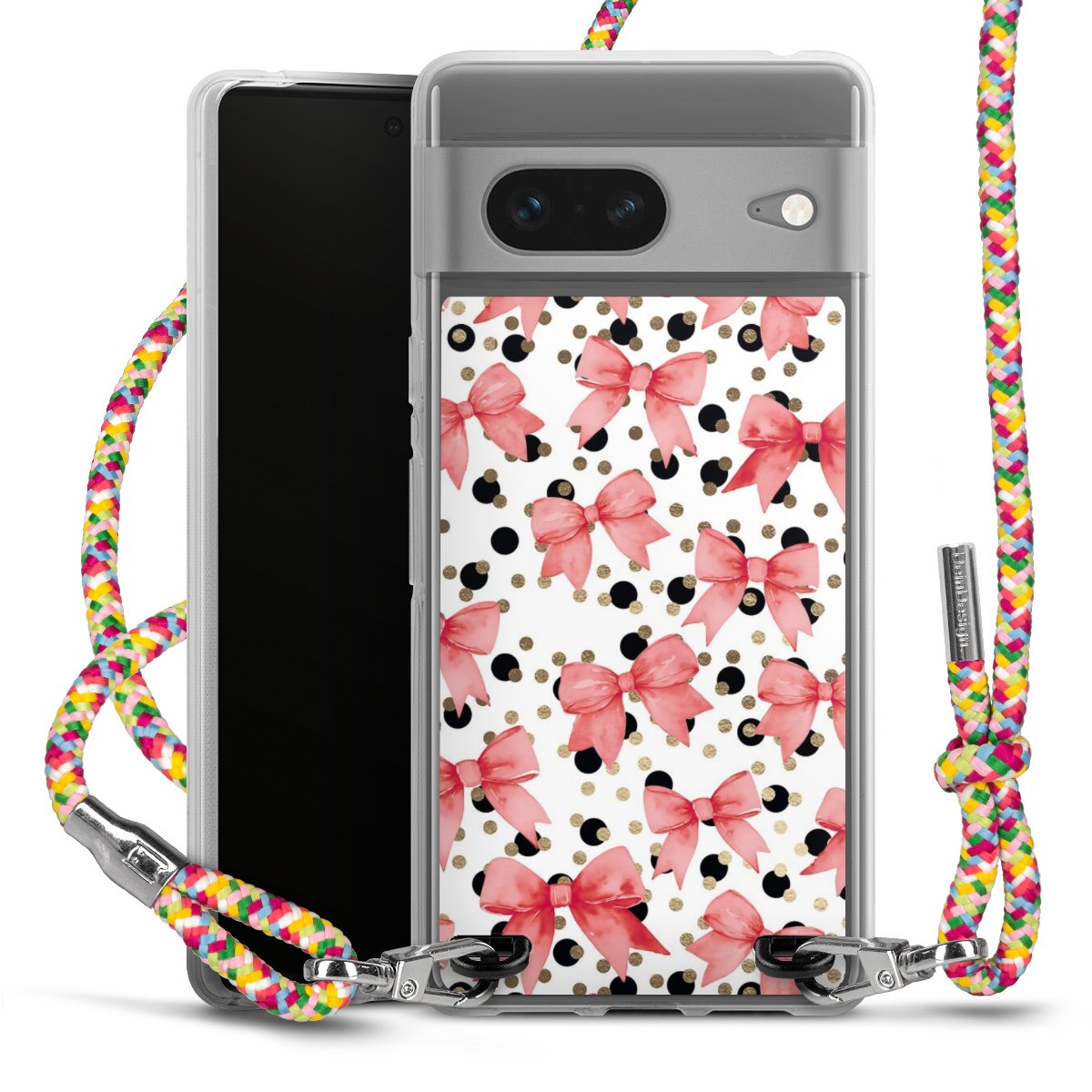 The flexible case is made from a highquality TPU material (thermoplastic Polyurethan). Thanks to its longlasting and break resistant characterisitcs, the case is flexible yet consistent in form and has a great grip and feel. The textile strap made from Polyester gives a chic yet casual accent allowing you to carry your phone like a bag or necklace - a practical gadget perfect for your next adventure. The textile strap is about 1.70 meters long and the length can easily be adjusted through the knots. Our Carry Case is available in Colourful, Mint-Camouflage, Very-Berry, Sahara-Sand and Sparkling-Neon. The ends of the textile strap are covered with metallic end caps to protect them against fraying.