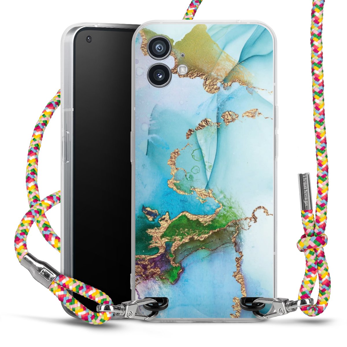 The flexible case is made from a highquality TPU material (thermoplastic Polyurethan). Thanks to its longlasting and break resistant characterisitcs, the case is flexible yet consistent in form and has a great grip and feel. The textile strap made from Polyester gives a chic yet casual accent allowing you to carry your phone like a bag or necklace - a practical gadget perfect for your next adventure. The textile strap is about 1.70 meters long and the length can easily be adjusted through the knots. Our Carry Case is available in Colourful, Mint-Camouflage, Very-Berry, Sahara-Sand and Sparkling-Neon. The ends of the textile strap are covered with metallic end caps to protect them against fraying.