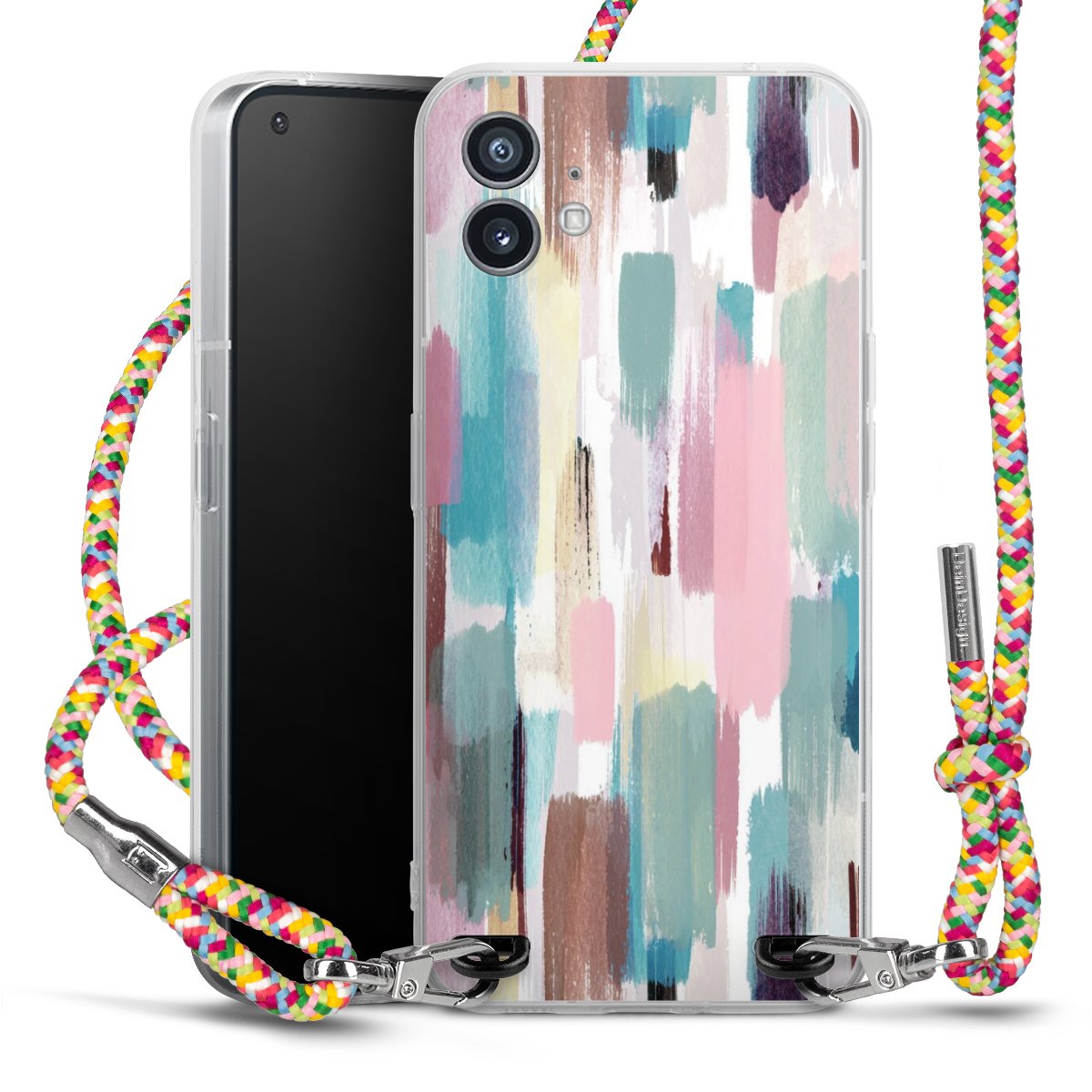 The flexible case is made from a highquality TPU material (thermoplastic Polyurethan). Thanks to its longlasting and break resistant characterisitcs, the case is flexible yet consistent in form and has a great grip and feel. The textile strap made from Polyester gives a chic yet casual accent allowing you to carry your phone like a bag or necklace - a practical gadget perfect for your next adventure. The textile strap is about 1.70 meters long and the length can easily be adjusted through the knots. Our Carry Case is available in Colourful, Mint-Camouflage, Very-Berry, Sahara-Sand and Sparkling-Neon. The ends of the textile strap are covered with metallic end caps to protect them against fraying.