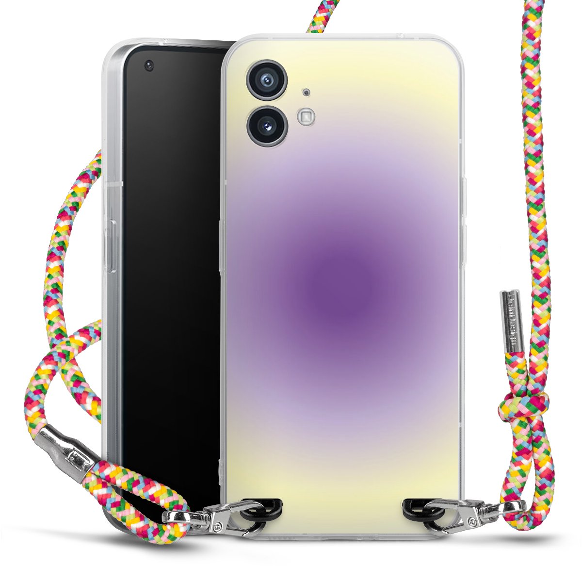 The flexible case is made from a highquality TPU material (thermoplastic Polyurethan). Thanks to its longlasting and break resistant characterisitcs, the case is flexible yet consistent in form and has a great grip and feel. The textile strap made from Polyester gives a chic yet casual accent allowing you to carry your phone like a bag or necklace - a practical gadget perfect for your next adventure. The textile strap is about 1.70 meters long and the length can easily be adjusted through the knots. Our Carry Case is available in Colourful, Mint-Camouflage, Very-Berry, Sahara-Sand and Sparkling-Neon. The ends of the textile strap are covered with metallic end caps to protect them against fraying.
