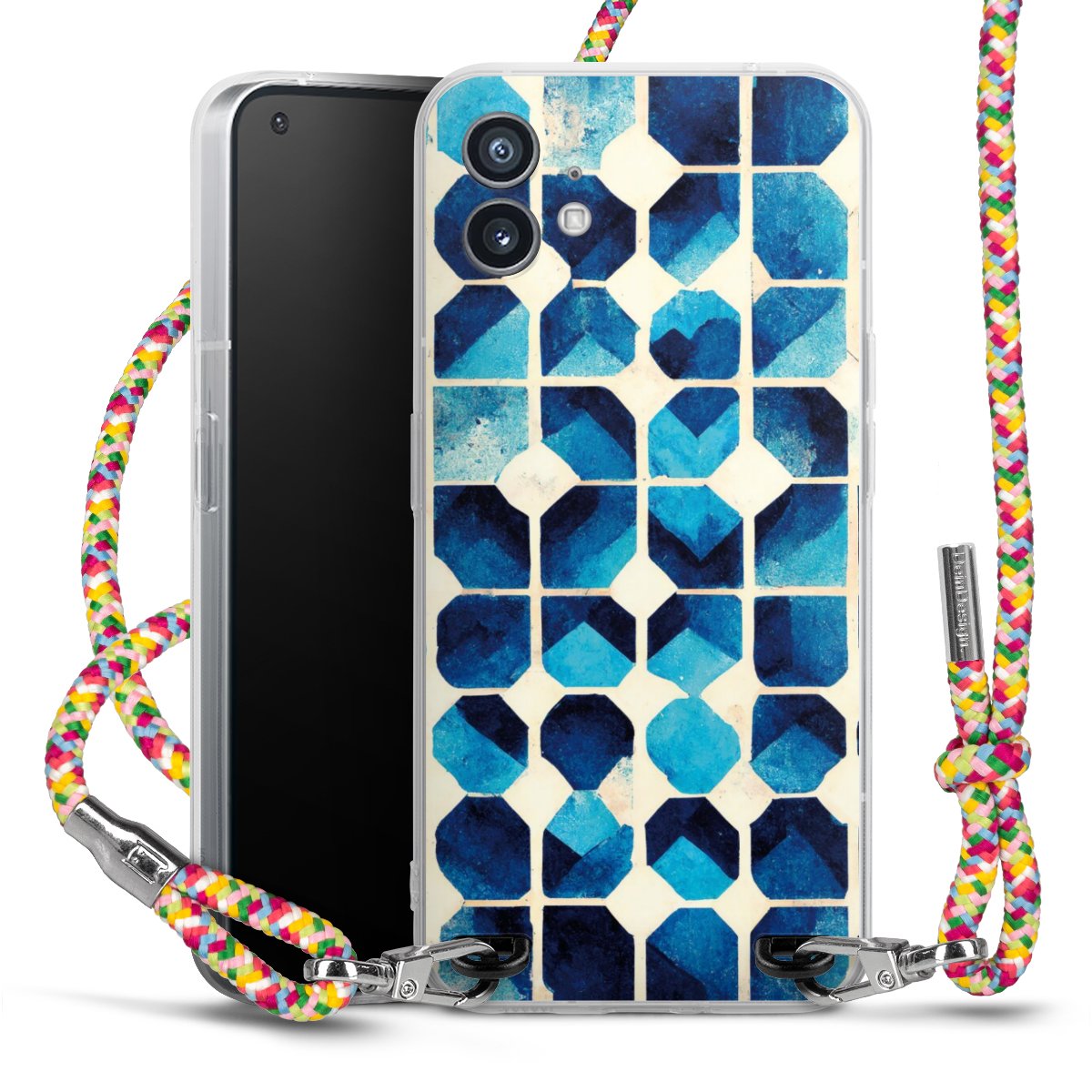 The flexible case is made from a highquality TPU material (thermoplastic Polyurethan). Thanks to its longlasting and break resistant characterisitcs, the case is flexible yet consistent in form and has a great grip and feel. The textile strap made from Polyester gives a chic yet casual accent allowing you to carry your phone like a bag or necklace - a practical gadget perfect for your next adventure. The textile strap is about 1.70 meters long and the length can easily be adjusted through the knots. Our Carry Case is available in Colourful, Mint-Camouflage, Very-Berry, Sahara-Sand and Sparkling-Neon. The ends of the textile strap are covered with metallic end caps to protect them against fraying.