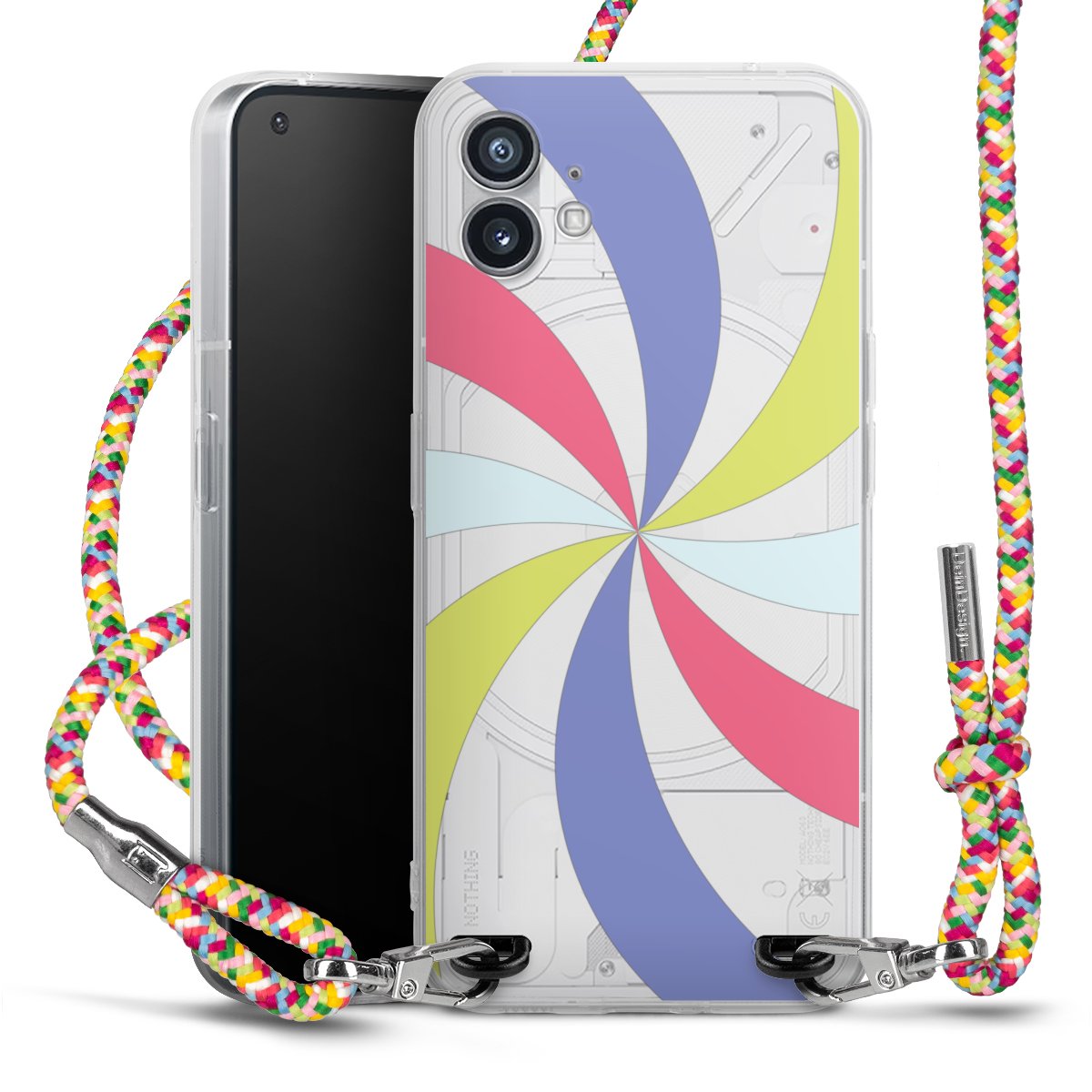 The flexible case is made from a highquality TPU material (thermoplastic Polyurethan). Thanks to its longlasting and break resistant characterisitcs, the case is flexible yet consistent in form and has a great grip and feel. The textile strap made from Polyester gives a chic yet casual accent allowing you to carry your phone like a bag or necklace - a practical gadget perfect for your next adventure. The textile strap is about 1.70 meters long and the length can easily be adjusted through the knots. Our Carry Case is available in Colourful, Mint-Camouflage, Very-Berry, Sahara-Sand and Sparkling-Neon. The ends of the textile strap are covered with metallic end caps to protect them against fraying.