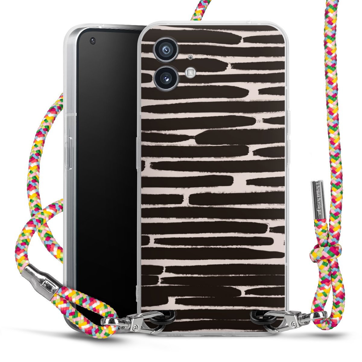 The flexible case is made from a highquality TPU material (thermoplastic Polyurethan). Thanks to its longlasting and break resistant characterisitcs, the case is flexible yet consistent in form and has a great grip and feel. The textile strap made from Polyester gives a chic yet casual accent allowing you to carry your phone like a bag or necklace - a practical gadget perfect for your next adventure. The textile strap is about 1.70 meters long and the length can easily be adjusted through the knots. Our Carry Case is available in Colourful, Mint-Camouflage, Very-Berry, Sahara-Sand and Sparkling-Neon. The ends of the textile strap are covered with metallic end caps to protect them against fraying.