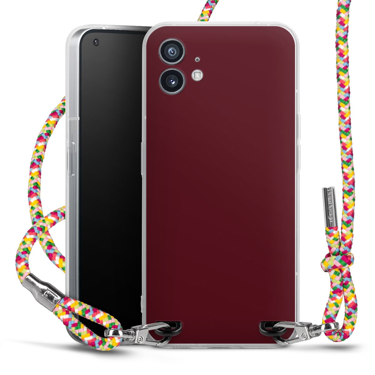 The flexible case is made from a highquality TPU material (thermoplastic Polyurethan). Thanks to its longlasting and break resistant characterisitcs, the case is flexible yet consistent in form and has a great grip and feel. The textile strap made from Polyester gives a chic yet casual accent allowing you to carry your phone like a bag or necklace - a practical gadget perfect for your next adventure. The textile strap is about 1.70 meters long and the length can easily be adjusted through the knots. Our Carry Case is available in Colourful, Mint-Camouflage, Very-Berry, Sahara-Sand and Sparkling-Neon. The ends of the textile strap are covered with metallic end caps to protect them against fraying.