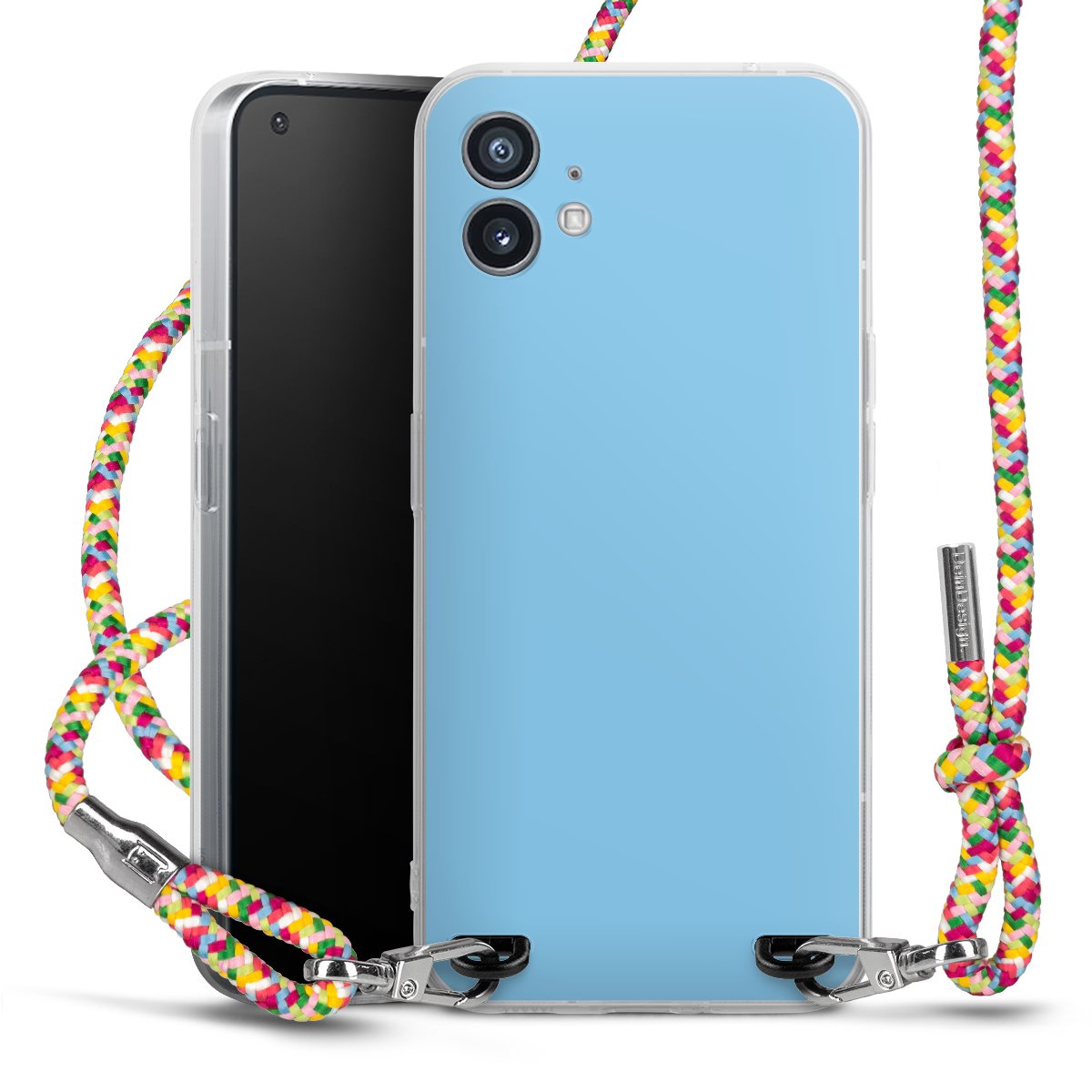 The flexible case is made from a highquality TPU material (thermoplastic Polyurethan). Thanks to its longlasting and break resistant characterisitcs, the case is flexible yet consistent in form and has a great grip and feel. The textile strap made from Polyester gives a chic yet casual accent allowing you to carry your phone like a bag or necklace - a practical gadget perfect for your next adventure. The textile strap is about 1.70 meters long and the length can easily be adjusted through the knots. Our Carry Case is available in Colourful, Mint-Camouflage, Very-Berry, Sahara-Sand and Sparkling-Neon. The ends of the textile strap are covered with metallic end caps to protect them against fraying.