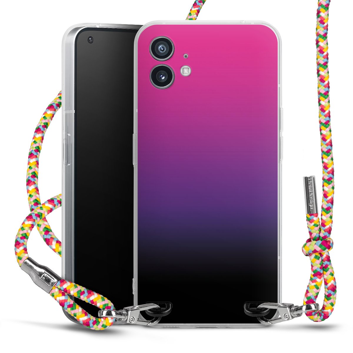 The flexible case is made from a highquality TPU material (thermoplastic Polyurethan). Thanks to its longlasting and break resistant characterisitcs, the case is flexible yet consistent in form and has a great grip and feel. The textile strap made from Polyester gives a chic yet casual accent allowing you to carry your phone like a bag or necklace - a practical gadget perfect for your next adventure. The textile strap is about 1.70 meters long and the length can easily be adjusted through the knots. Our Carry Case is available in Colourful, Mint-Camouflage, Very-Berry, Sahara-Sand and Sparkling-Neon. The ends of the textile strap are covered with metallic end caps to protect them against fraying.