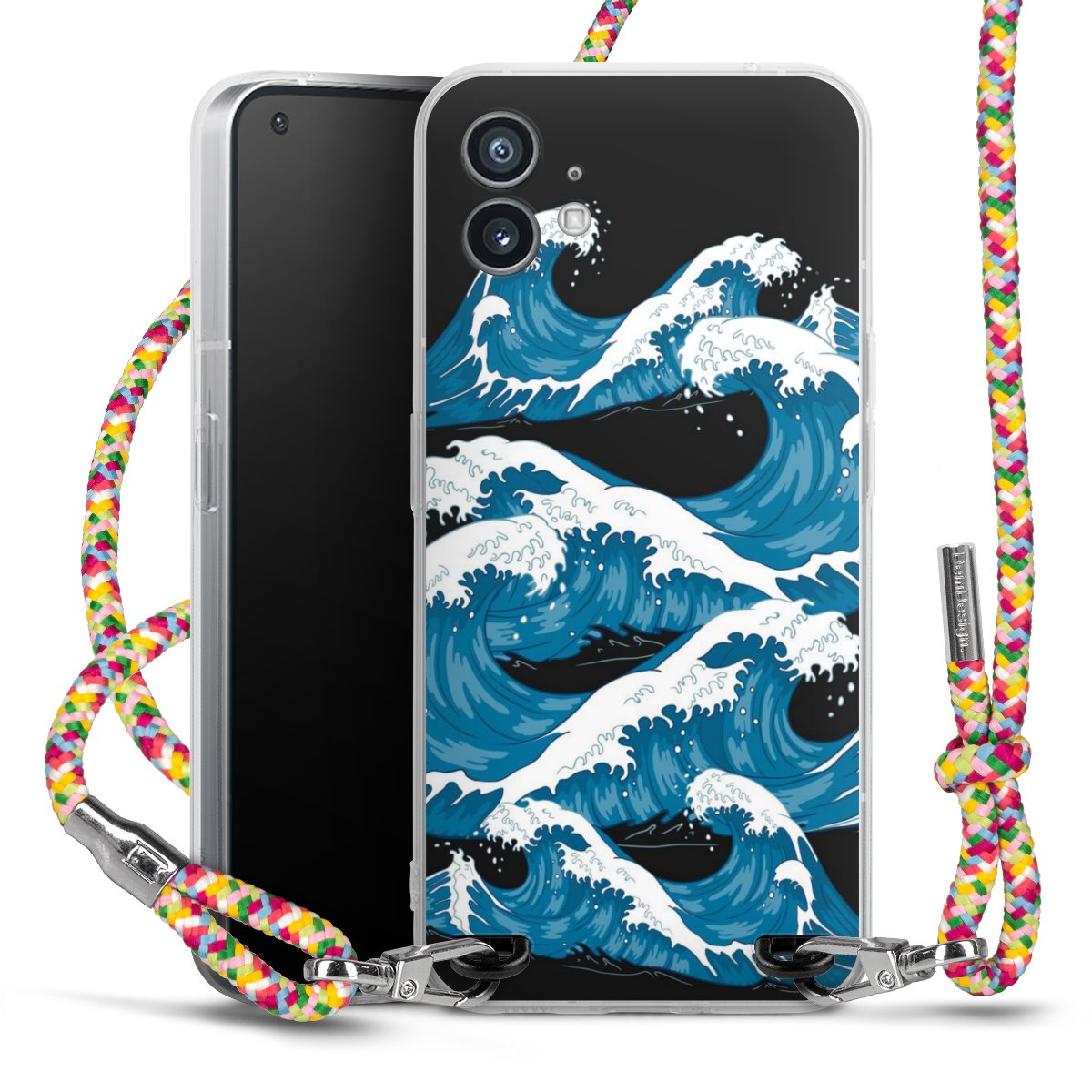 The flexible case is made from a highquality TPU material (thermoplastic Polyurethan). Thanks to its longlasting and break resistant characterisitcs, the case is flexible yet consistent in form and has a great grip and feel. The textile strap made from Polyester gives a chic yet casual accent allowing you to carry your phone like a bag or necklace - a practical gadget perfect for your next adventure. The textile strap is about 1.70 meters long and the length can easily be adjusted through the knots. Our Carry Case is available in Colourful, Mint-Camouflage, Very-Berry, Sahara-Sand and Sparkling-Neon. The ends of the textile strap are covered with metallic end caps to protect them against fraying.
