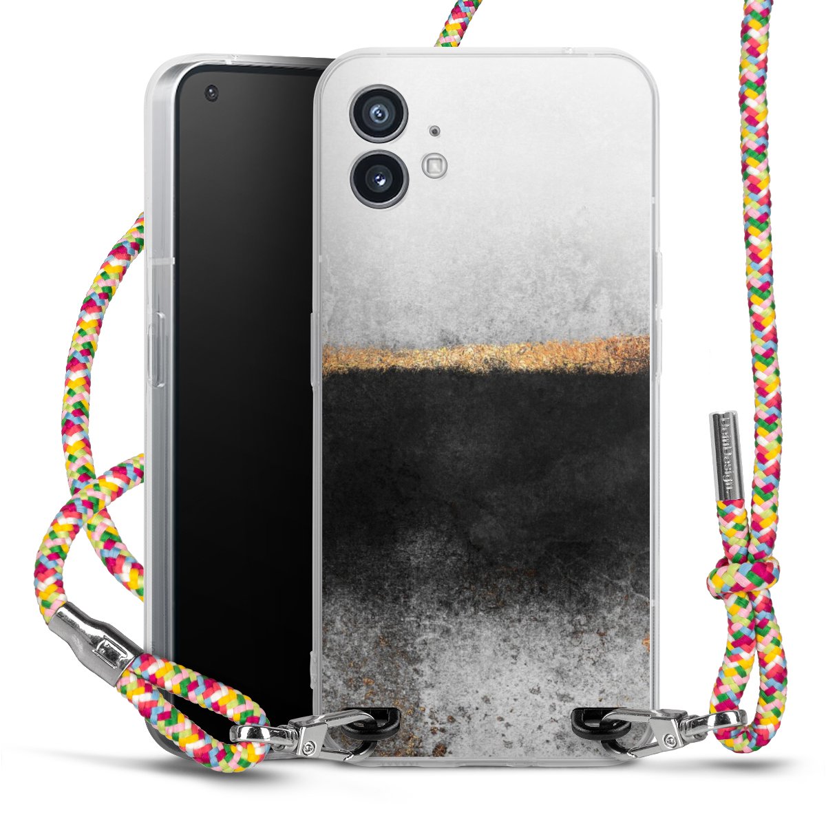 The flexible case is made from a highquality TPU material (thermoplastic Polyurethan). Thanks to its longlasting and break resistant characterisitcs, the case is flexible yet consistent in form and has a great grip and feel. The textile strap made from Polyester gives a chic yet casual accent allowing you to carry your phone like a bag or necklace - a practical gadget perfect for your next adventure. The textile strap is about 1.70 meters long and the length can easily be adjusted through the knots. Our Carry Case is available in Colourful, Mint-Camouflage, Very-Berry, Sahara-Sand and Sparkling-Neon. The ends of the textile strap are covered with metallic end caps to protect them against fraying.