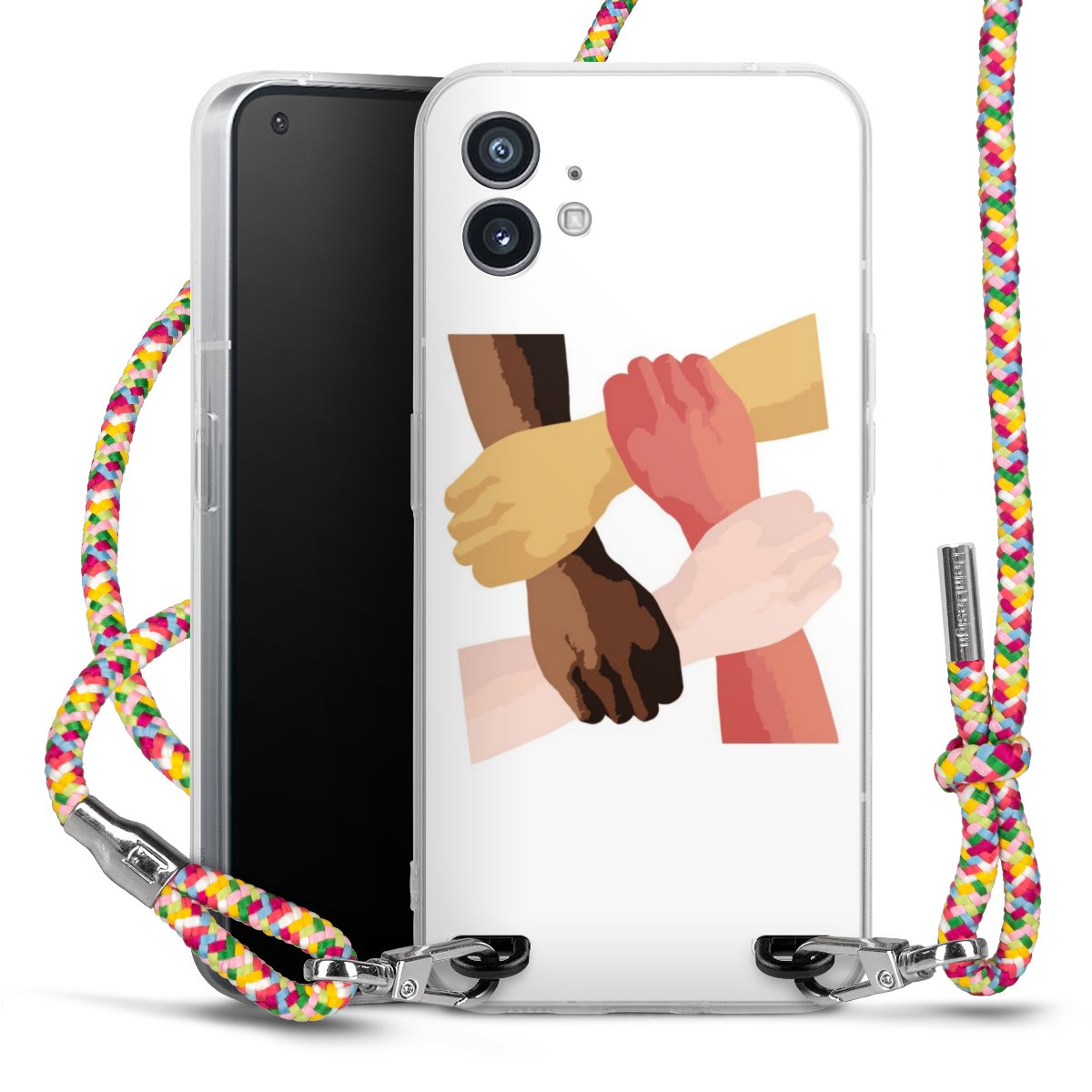 The flexible case is made from a highquality TPU material (thermoplastic Polyurethan). Thanks to its longlasting and break resistant characterisitcs, the case is flexible yet consistent in form and has a great grip and feel. The textile strap made from Polyester gives a chic yet casual accent allowing you to carry your phone like a bag or necklace - a practical gadget perfect for your next adventure. The textile strap is about 1.70 meters long and the length can easily be adjusted through the knots. Our Carry Case is available in Colourful, Mint-Camouflage, Very-Berry, Sahara-Sand and Sparkling-Neon. The ends of the textile strap are covered with metallic end caps to protect them against fraying.
