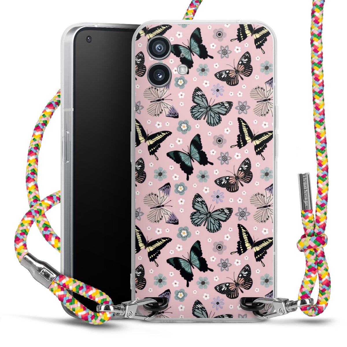 The flexible case is made from a highquality TPU material (thermoplastic Polyurethan). Thanks to its longlasting and break resistant characterisitcs, the case is flexible yet consistent in form and has a great grip and feel. The textile strap made from Polyester gives a chic yet casual accent allowing you to carry your phone like a bag or necklace - a practical gadget perfect for your next adventure. The textile strap is about 1.70 meters long and the length can easily be adjusted through the knots. Our Carry Case is available in Colourful, Mint-Camouflage, Very-Berry, Sahara-Sand and Sparkling-Neon. The ends of the textile strap are covered with metallic end caps to protect them against fraying.
