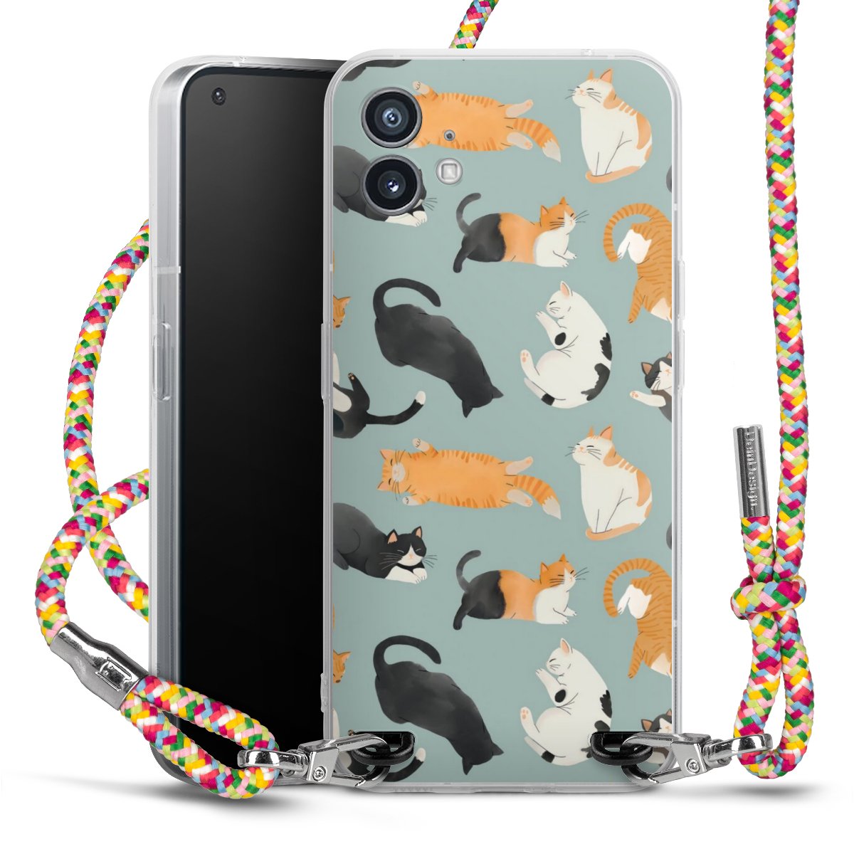 The flexible case is made from a highquality TPU material (thermoplastic Polyurethan). Thanks to its longlasting and break resistant characterisitcs, the case is flexible yet consistent in form and has a great grip and feel. The textile strap made from Polyester gives a chic yet casual accent allowing you to carry your phone like a bag or necklace - a practical gadget perfect for your next adventure. The textile strap is about 1.70 meters long and the length can easily be adjusted through the knots. Our Carry Case is available in Colourful, Mint-Camouflage, Very-Berry, Sahara-Sand and Sparkling-Neon. The ends of the textile strap are covered with metallic end caps to protect them against fraying.