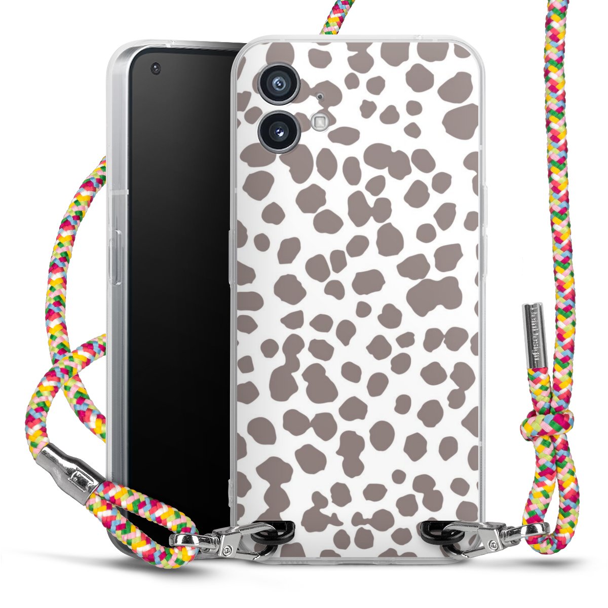 The flexible case is made from a highquality TPU material (thermoplastic Polyurethan). Thanks to its longlasting and break resistant characterisitcs, the case is flexible yet consistent in form and has a great grip and feel. The textile strap made from Polyester gives a chic yet casual accent allowing you to carry your phone like a bag or necklace - a practical gadget perfect for your next adventure. The textile strap is about 1.70 meters long and the length can easily be adjusted through the knots. Our Carry Case is available in Colourful, Mint-Camouflage, Very-Berry, Sahara-Sand and Sparkling-Neon. The ends of the textile strap are covered with metallic end caps to protect them against fraying.