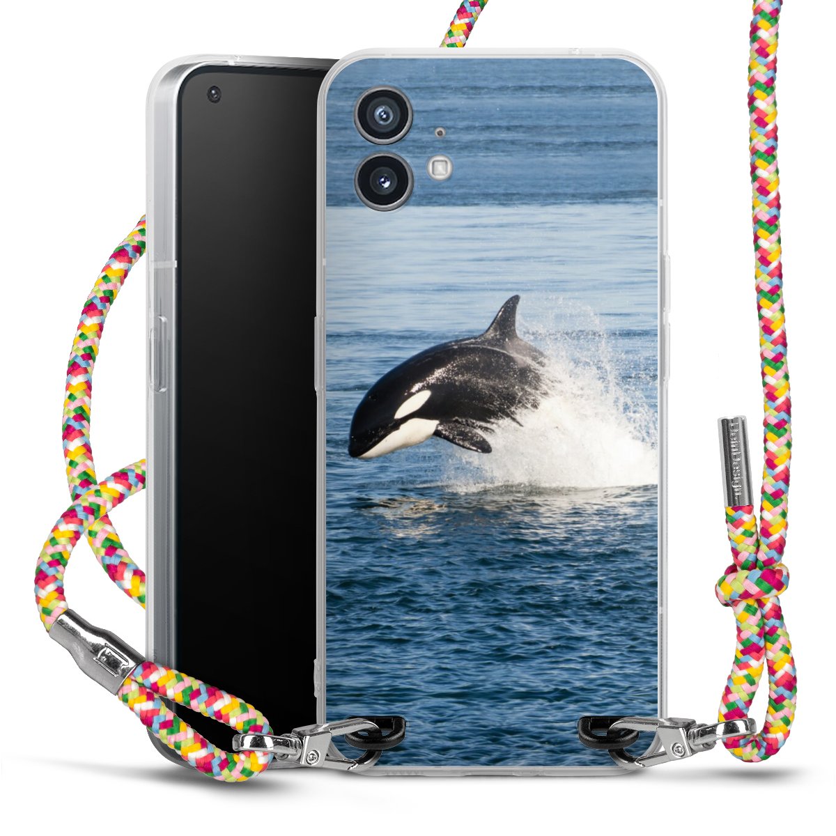 The flexible case is made from a highquality TPU material (thermoplastic Polyurethan). Thanks to its longlasting and break resistant characterisitcs, the case is flexible yet consistent in form and has a great grip and feel. The textile strap made from Polyester gives a chic yet casual accent allowing you to carry your phone like a bag or necklace - a practical gadget perfect for your next adventure. The textile strap is about 1.70 meters long and the length can easily be adjusted through the knots. Our Carry Case is available in Colourful, Mint-Camouflage, Very-Berry, Sahara-Sand and Sparkling-Neon. The ends of the textile strap are covered with metallic end caps to protect them against fraying.