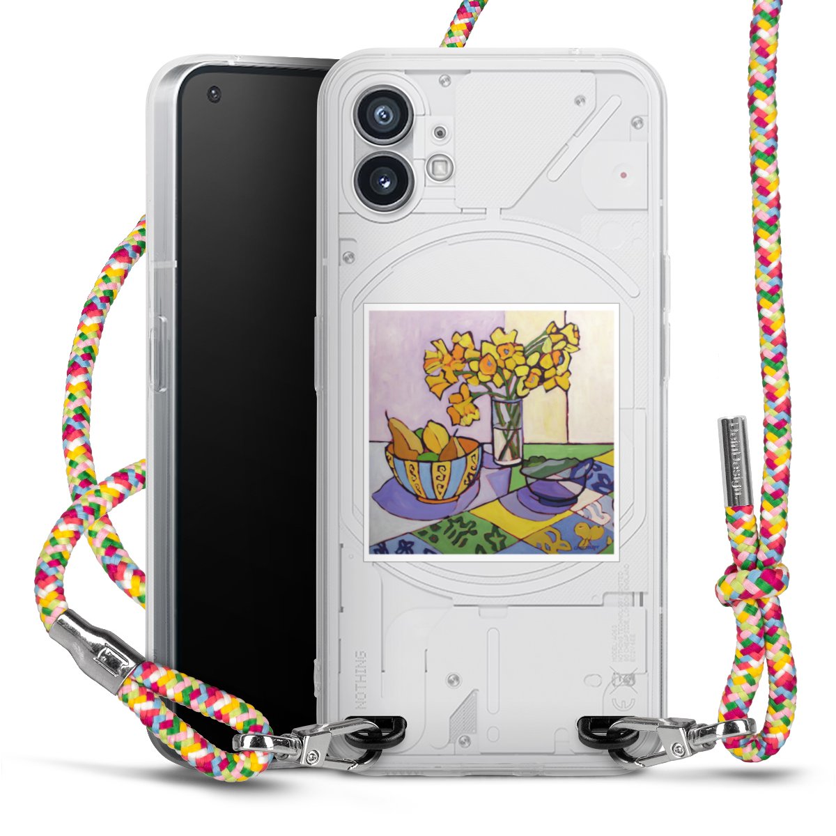 The flexible case is made from a highquality TPU material (thermoplastic Polyurethan). Thanks to its longlasting and break resistant characterisitcs, the case is flexible yet consistent in form and has a great grip and feel. The textile strap made from Polyester gives a chic yet casual accent allowing you to carry your phone like a bag or necklace - a practical gadget perfect for your next adventure. The textile strap is about 1.70 meters long and the length can easily be adjusted through the knots. Our Carry Case is available in Colourful, Mint-Camouflage, Very-Berry, Sahara-Sand and Sparkling-Neon. The ends of the textile strap are covered with metallic end caps to protect them against fraying.