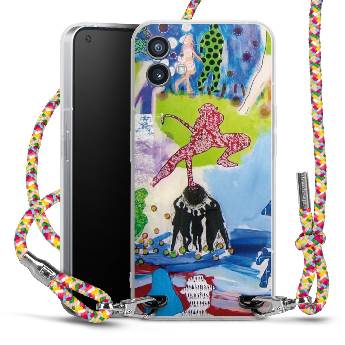 The flexible case is made from a highquality TPU material (thermoplastic Polyurethan). Thanks to its longlasting and break resistant characterisitcs, the case is flexible yet consistent in form and has a great grip and feel. The textile strap made from Polyester gives a chic yet casual accent allowing you to carry your phone like a bag or necklace - a practical gadget perfect for your next adventure. The textile strap is about 1.70 meters long and the length can easily be adjusted through the knots. Our Carry Case is available in Colourful, Mint-Camouflage, Very-Berry, Sahara-Sand and Sparkling-Neon. The ends of the textile strap are covered with metallic end caps to protect them against fraying.