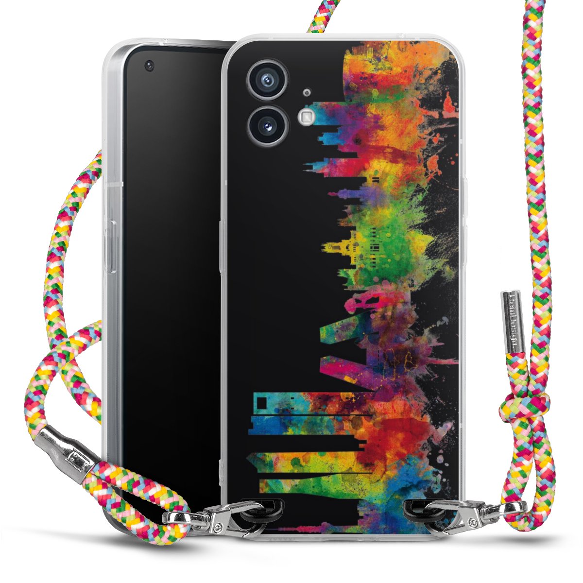 The flexible case is made from a highquality TPU material (thermoplastic Polyurethan). Thanks to its longlasting and break resistant characterisitcs, the case is flexible yet consistent in form and has a great grip and feel. The textile strap made from Polyester gives a chic yet casual accent allowing you to carry your phone like a bag or necklace - a practical gadget perfect for your next adventure. The textile strap is about 1.70 meters long and the length can easily be adjusted through the knots. Our Carry Case is available in Colourful, Mint-Camouflage, Very-Berry, Sahara-Sand and Sparkling-Neon. The ends of the textile strap are covered with metallic end caps to protect them against fraying.