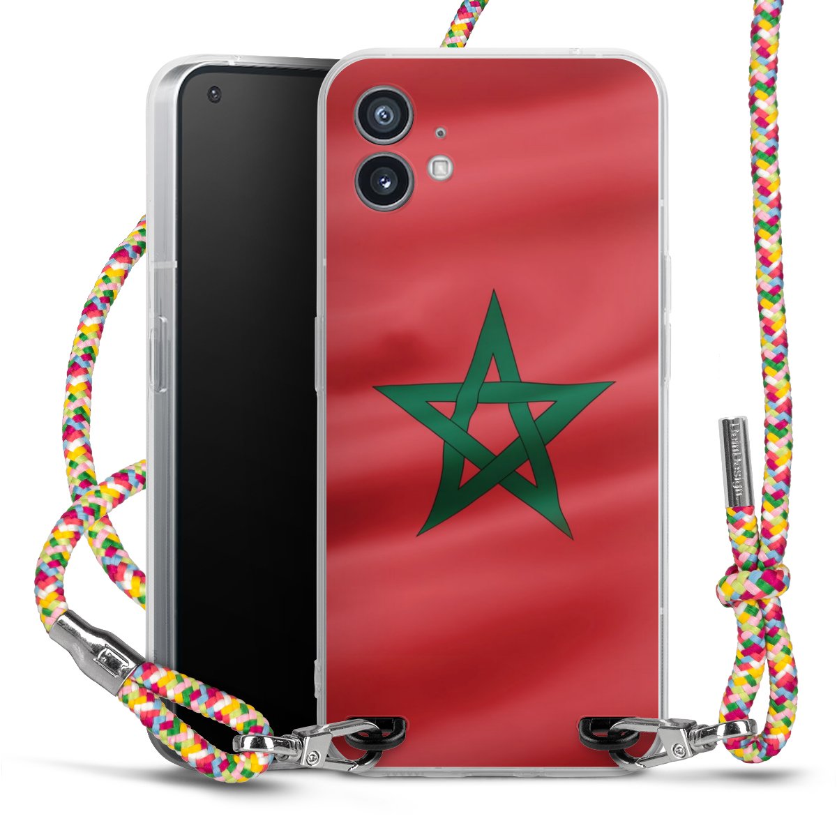 The flexible case is made from a highquality TPU material (thermoplastic Polyurethan). Thanks to its longlasting and break resistant characterisitcs, the case is flexible yet consistent in form and has a great grip and feel. The textile strap made from Polyester gives a chic yet casual accent allowing you to carry your phone like a bag or necklace - a practical gadget perfect for your next adventure. The textile strap is about 1.70 meters long and the length can easily be adjusted through the knots. Our Carry Case is available in Colourful, Mint-Camouflage, Very-Berry, Sahara-Sand and Sparkling-Neon. The ends of the textile strap are covered with metallic end caps to protect them against fraying.