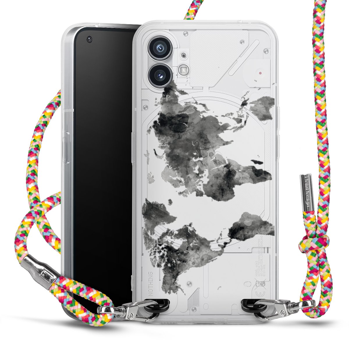 The flexible case is made from a highquality TPU material (thermoplastic Polyurethan). Thanks to its longlasting and break resistant characterisitcs, the case is flexible yet consistent in form and has a great grip and feel. The textile strap made from Polyester gives a chic yet casual accent allowing you to carry your phone like a bag or necklace - a practical gadget perfect for your next adventure. The textile strap is about 1.70 meters long and the length can easily be adjusted through the knots. Our Carry Case is available in Colourful, Mint-Camouflage, Very-Berry, Sahara-Sand and Sparkling-Neon. The ends of the textile strap are covered with metallic end caps to protect them against fraying.