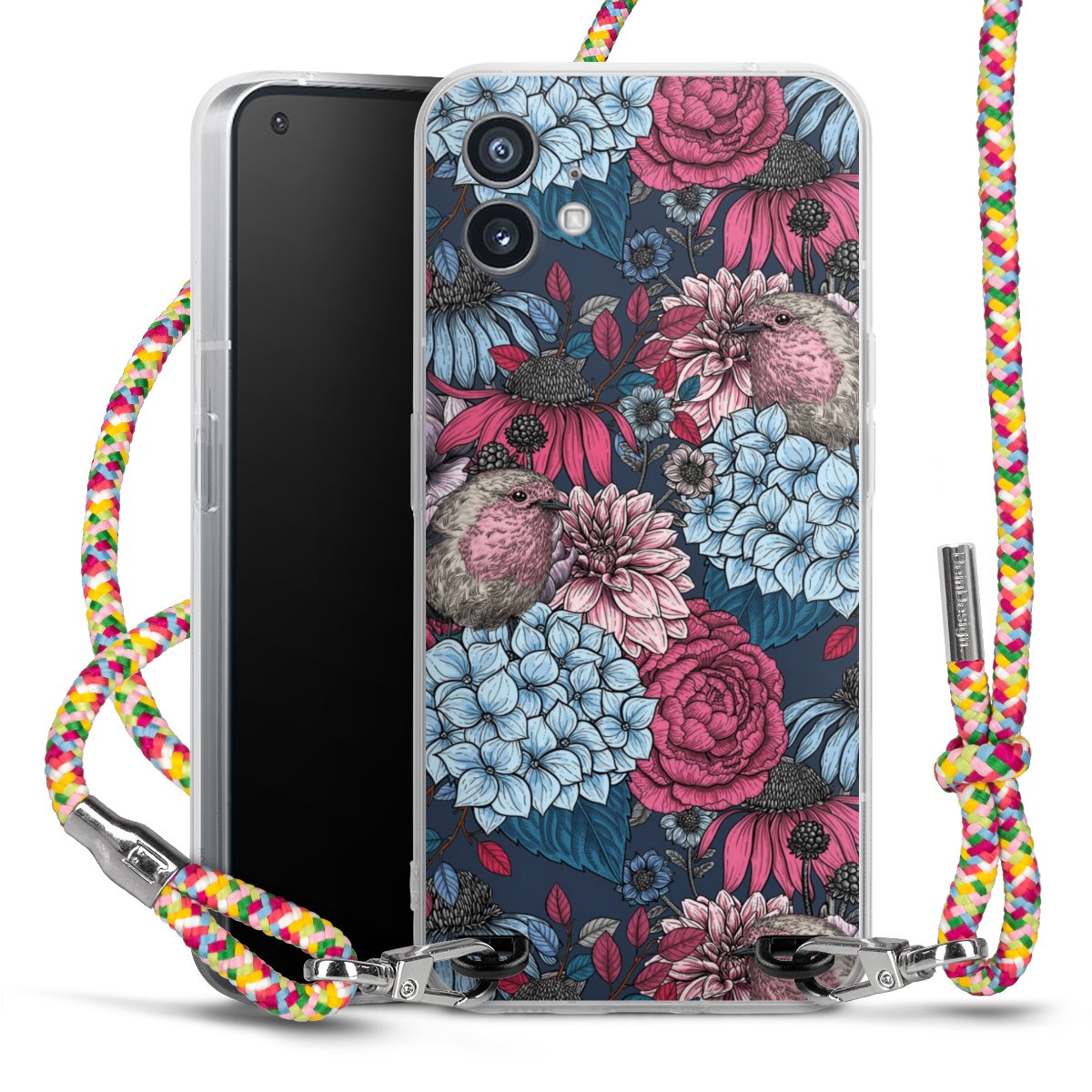 The flexible case is made from a highquality TPU material (thermoplastic Polyurethan). Thanks to its longlasting and break resistant characterisitcs, the case is flexible yet consistent in form and has a great grip and feel. The textile strap made from Polyester gives a chic yet casual accent allowing you to carry your phone like a bag or necklace - a practical gadget perfect for your next adventure. The textile strap is about 1.70 meters long and the length can easily be adjusted through the knots. Our Carry Case is available in Colourful, Mint-Camouflage, Very-Berry, Sahara-Sand and Sparkling-Neon. The ends of the textile strap are covered with metallic end caps to protect them against fraying.