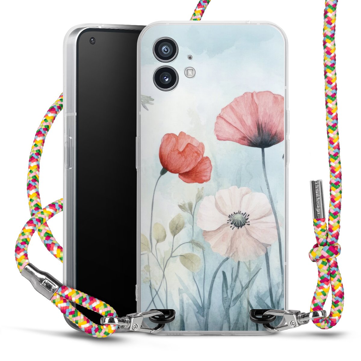 The flexible case is made from a highquality TPU material (thermoplastic Polyurethan). Thanks to its longlasting and break resistant characterisitcs, the case is flexible yet consistent in form and has a great grip and feel. The textile strap made from Polyester gives a chic yet casual accent allowing you to carry your phone like a bag or necklace - a practical gadget perfect for your next adventure. The textile strap is about 1.70 meters long and the length can easily be adjusted through the knots. Our Carry Case is available in Colourful, Mint-Camouflage, Very-Berry, Sahara-Sand and Sparkling-Neon. The ends of the textile strap are covered with metallic end caps to protect them against fraying.