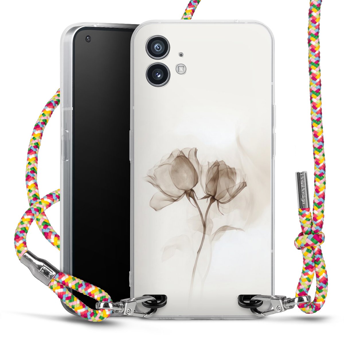 The flexible case is made from a highquality TPU material (thermoplastic Polyurethan). Thanks to its longlasting and break resistant characterisitcs, the case is flexible yet consistent in form and has a great grip and feel. The textile strap made from Polyester gives a chic yet casual accent allowing you to carry your phone like a bag or necklace - a practical gadget perfect for your next adventure. The textile strap is about 1.70 meters long and the length can easily be adjusted through the knots. Our Carry Case is available in Colourful, Mint-Camouflage, Very-Berry, Sahara-Sand and Sparkling-Neon. The ends of the textile strap are covered with metallic end caps to protect them against fraying.