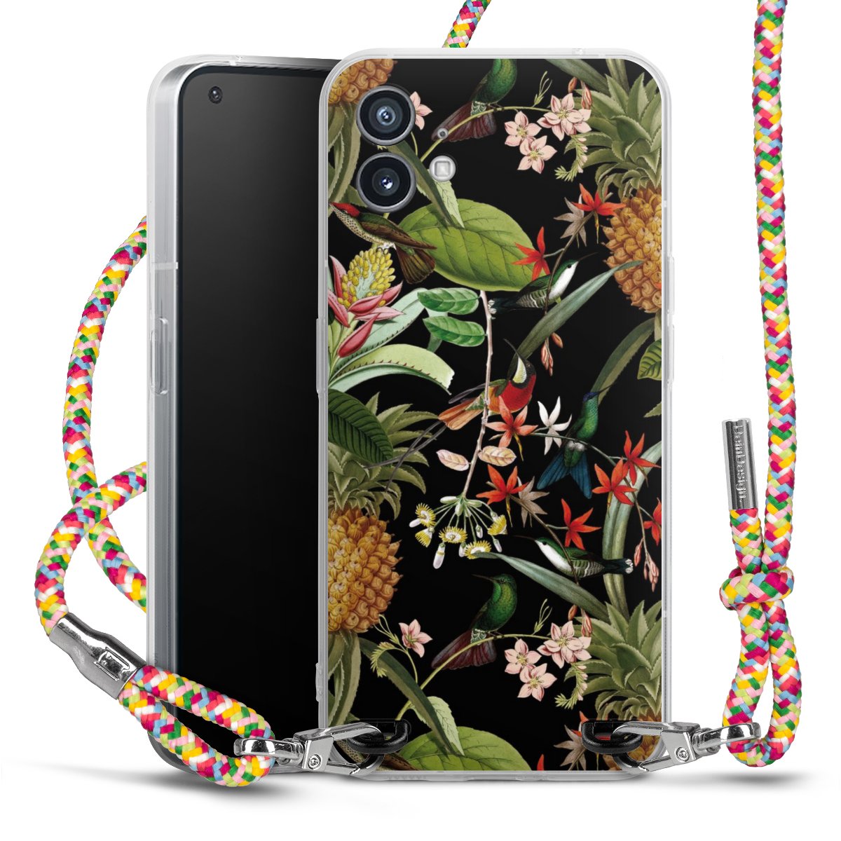 The flexible case is made from a highquality TPU material (thermoplastic Polyurethan). Thanks to its longlasting and break resistant characterisitcs, the case is flexible yet consistent in form and has a great grip and feel. The textile strap made from Polyester gives a chic yet casual accent allowing you to carry your phone like a bag or necklace - a practical gadget perfect for your next adventure. The textile strap is about 1.70 meters long and the length can easily be adjusted through the knots. Our Carry Case is available in Colourful, Mint-Camouflage, Very-Berry, Sahara-Sand and Sparkling-Neon. The ends of the textile strap are covered with metallic end caps to protect them against fraying.