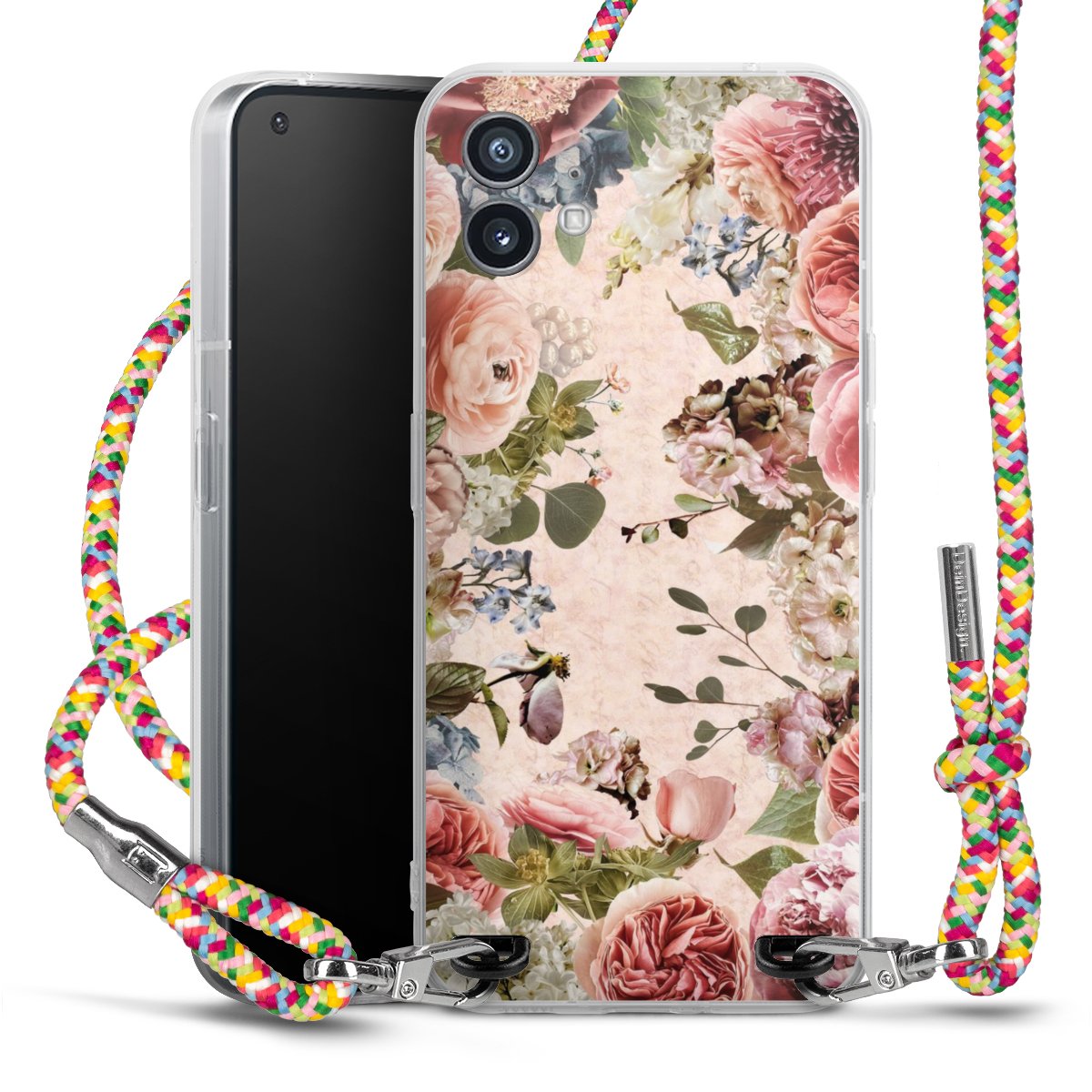 The flexible case is made from a highquality TPU material (thermoplastic Polyurethan). Thanks to its longlasting and break resistant characterisitcs, the case is flexible yet consistent in form and has a great grip and feel. The textile strap made from Polyester gives a chic yet casual accent allowing you to carry your phone like a bag or necklace - a practical gadget perfect for your next adventure. The textile strap is about 1.70 meters long and the length can easily be adjusted through the knots. Our Carry Case is available in Colourful, Mint-Camouflage, Very-Berry, Sahara-Sand and Sparkling-Neon. The ends of the textile strap are covered with metallic end caps to protect them against fraying.
