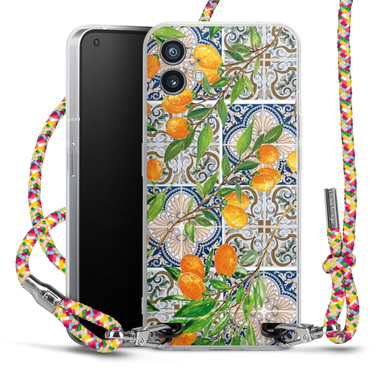 The flexible case is made from a highquality TPU material (thermoplastic Polyurethan). Thanks to its longlasting and break resistant characterisitcs, the case is flexible yet consistent in form and has a great grip and feel. The textile strap made from Polyester gives a chic yet casual accent allowing you to carry your phone like a bag or necklace - a practical gadget perfect for your next adventure. The textile strap is about 1.70 meters long and the length can easily be adjusted through the knots. Our Carry Case is available in Colourful, Mint-Camouflage, Very-Berry, Sahara-Sand and Sparkling-Neon. The ends of the textile strap are covered with metallic end caps to protect them against fraying.