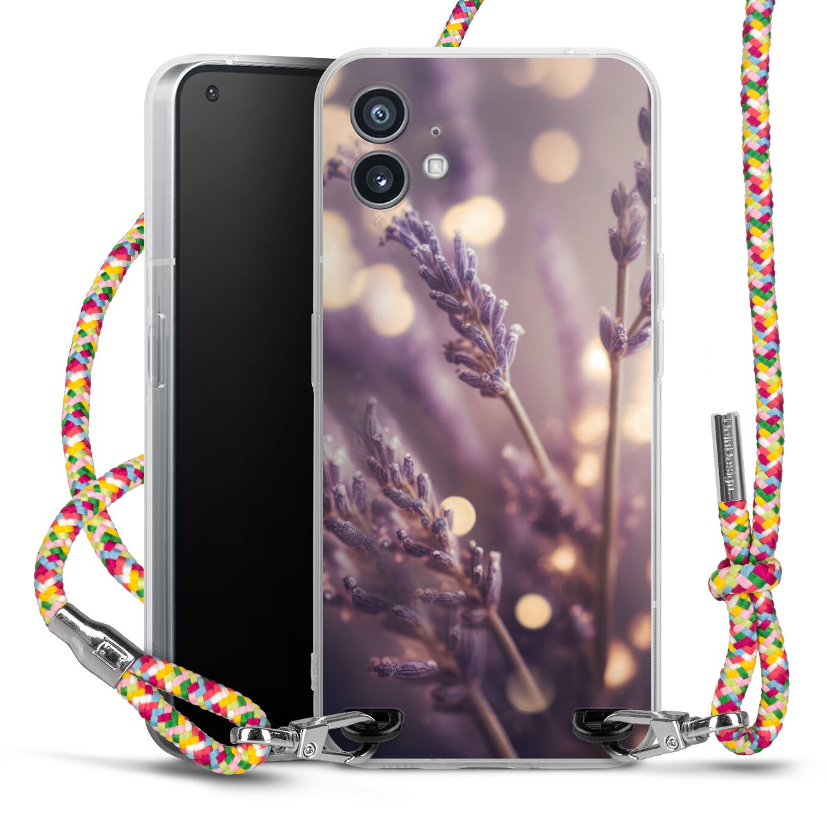 The flexible case is made from a highquality TPU material (thermoplastic Polyurethan). Thanks to its longlasting and break resistant characterisitcs, the case is flexible yet consistent in form and has a great grip and feel. The textile strap made from Polyester gives a chic yet casual accent allowing you to carry your phone like a bag or necklace - a practical gadget perfect for your next adventure. The textile strap is about 1.70 meters long and the length can easily be adjusted through the knots. Our Carry Case is available in Colourful, Mint-Camouflage, Very-Berry, Sahara-Sand and Sparkling-Neon. The ends of the textile strap are covered with metallic end caps to protect them against fraying.
